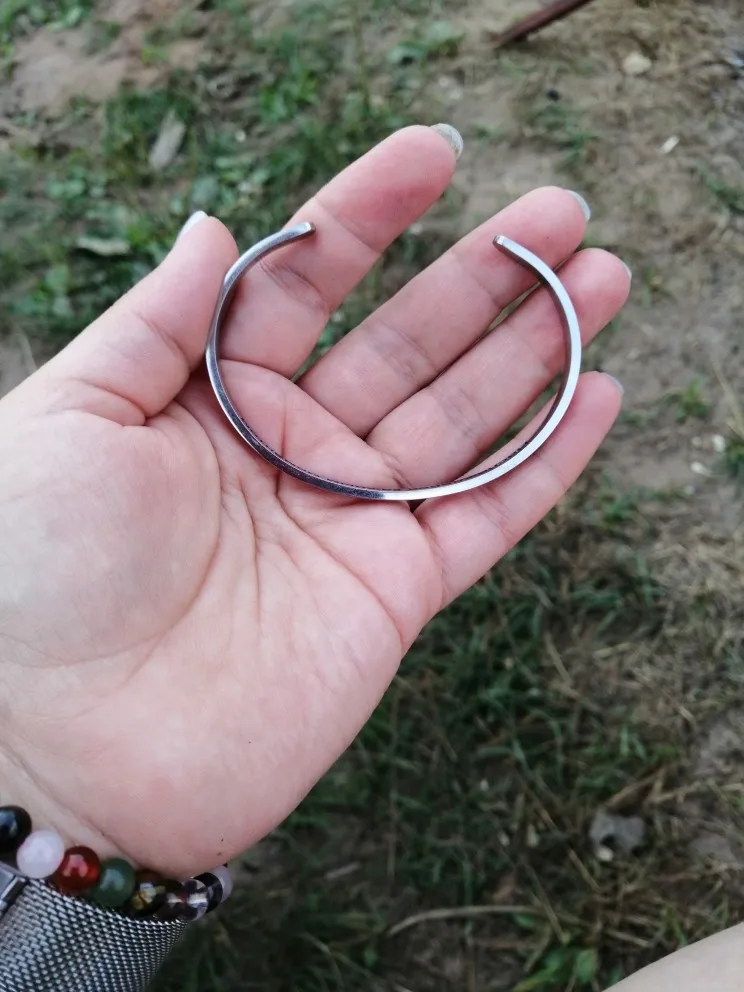 Браслет отличный! Хорошая сталь, благородно матовый цвет металла. Браслет стандартного размера и может показаться великоватым. Но немного применив силу, подогнала его под свое 15 см запястье. Продавец молодец, я попросила гравировку с двух сторон, все сделал просто замечательно. Гравировка четкая, правильная. Я в восторге!