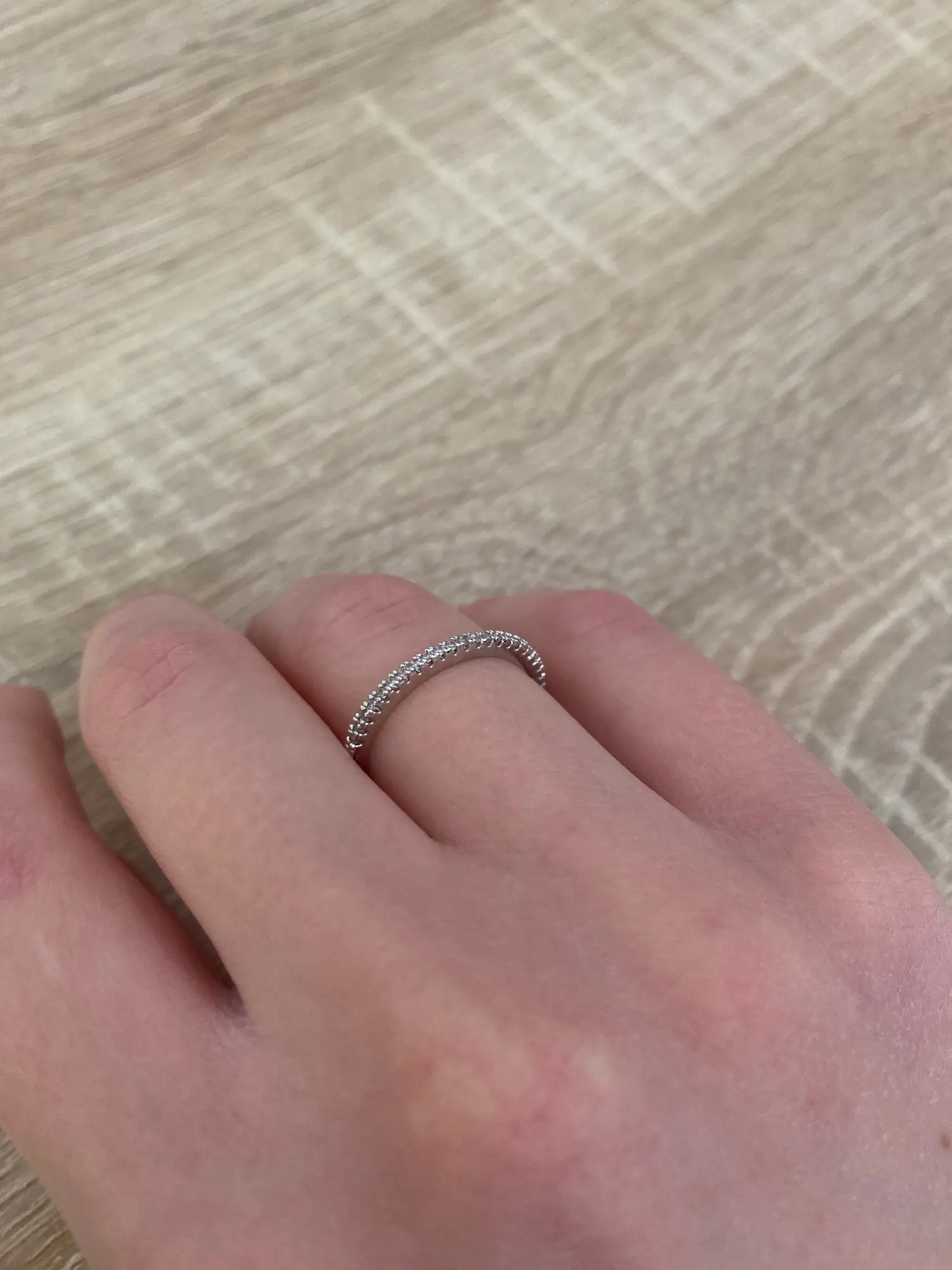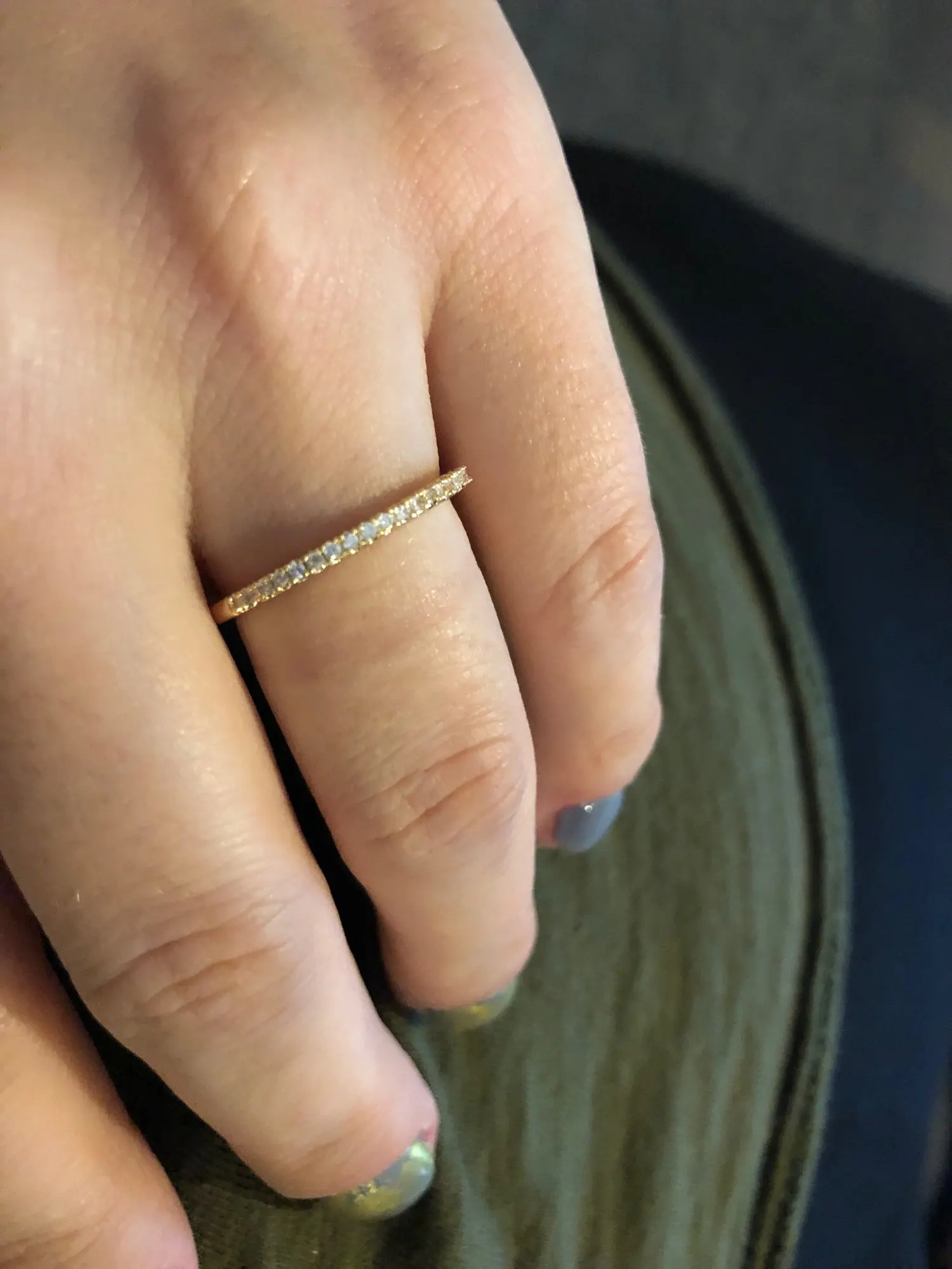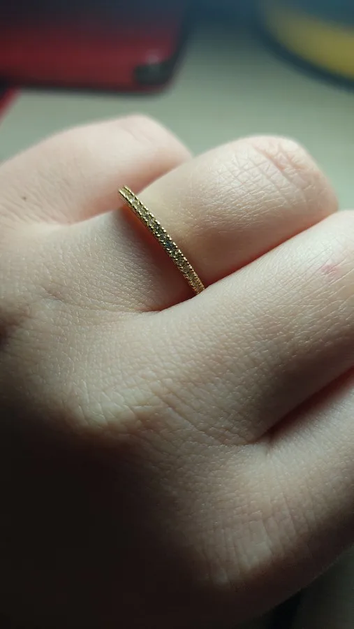 Кольцо подошло очень быстро, хотя не было отслеживания обновления, поэтому я был удивлен, когда он пришел. Немного толще, чем я ожидала (что не очень важно), а размер 6 немного меньше, чем мой другой размер 6 колец, но в противном случае это красиво! Это определенно станет основным повседневным кольцом.