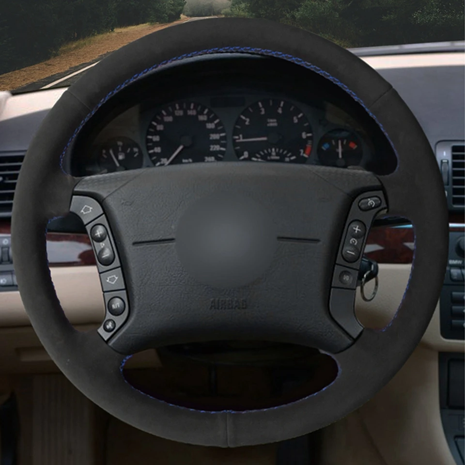 Чехол рулевого колеса автомобиля черная замша ручной работы для MW E36 1995-1997 E46 1998-2004 X3 E83 X5 E53 E38 1994-2001 E31 1996