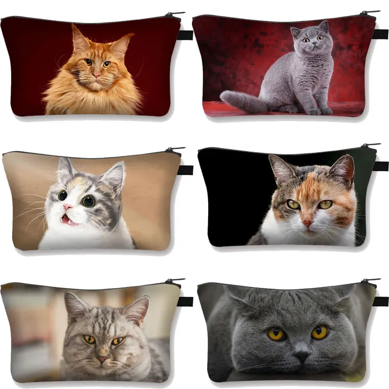 Новинка 2021, сумки для макияжа с 3D рисунком кошки, женская косметичка, сумка для косметики с 3D рисунком, дорожная косметичка для женщин