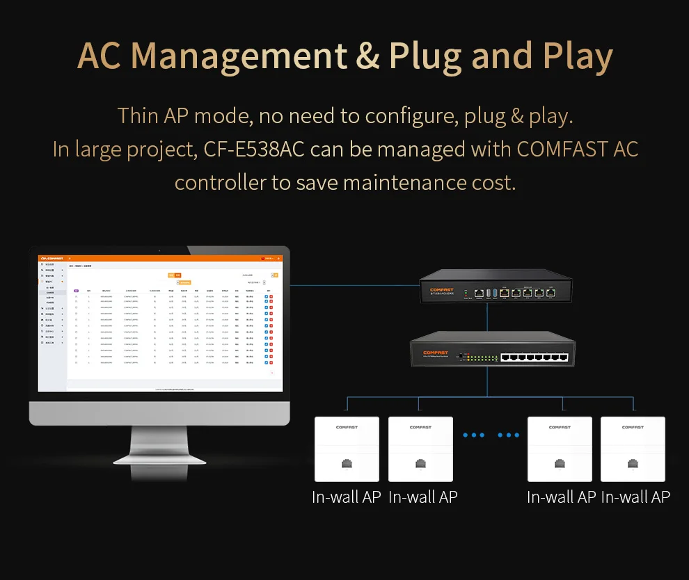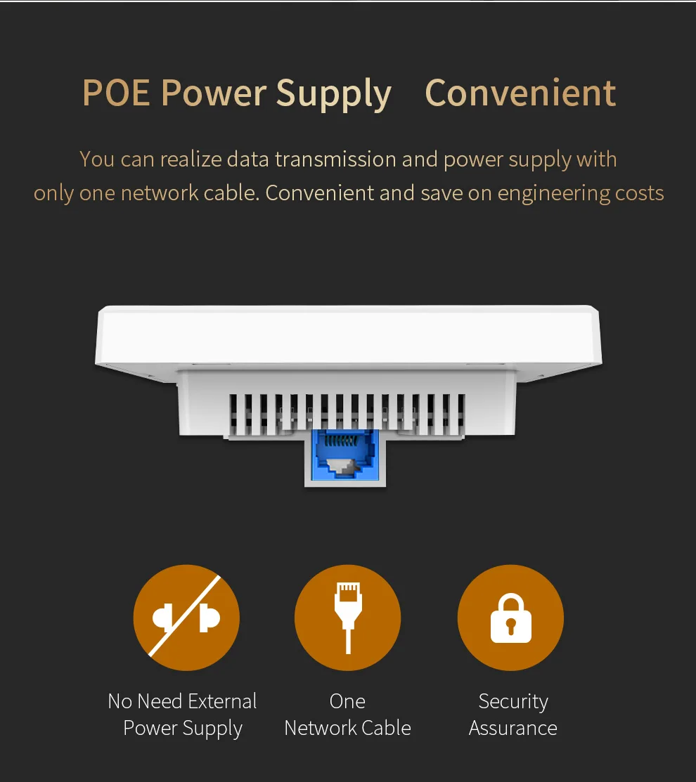 Wi-Fi-порт настенный, 1200 Мбитс, 2,4 + 5,8, 48 В