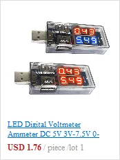 100% абсолютно новый, высокое качествоРабочее напряжение самого инструмента: постоянный ток 4-30 в (максимальное входное напряжение не может превышать 30 В, в противном случае прибор будет гореть)Рабочий ток самого инструмента: ≤ 20 мАДиапазон измерения напряжения: постоянный ток 0-100 вДиапазон измерения тока: постоянный ток 0-10 АРазрешение напряжения (В): 0,1 вТекущее разрешение (A): 0.01AТочность измерения: 1% (± 1 цифра)Дисплей: 0,28 "цифровая трубкаЧастота обновления: около 300 мс/времяРазмер: 48 мм * 29 мм * 26 ммРабочая температура: -10 ℃-+ 65 ℃Рабочее давление: 80 ~ 106 кПаВес нетто: 21 г
