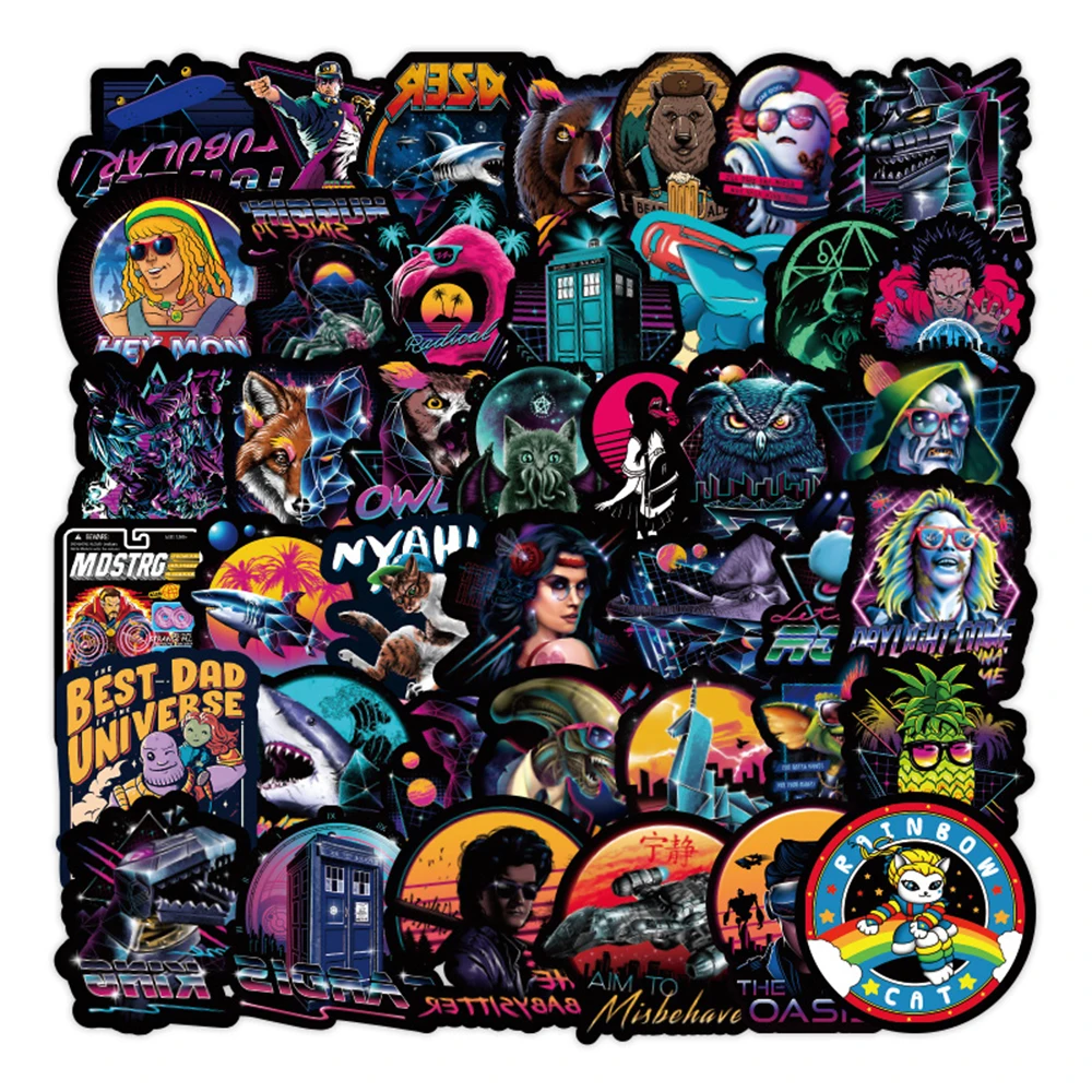 50 шт., неоновый светильник, наклейки, подарки, игрушки для детей, аниме, животные, милые наклейки, наклейки на ноутбук, телефон, чемодан, гитара, холодильник, автомобиль