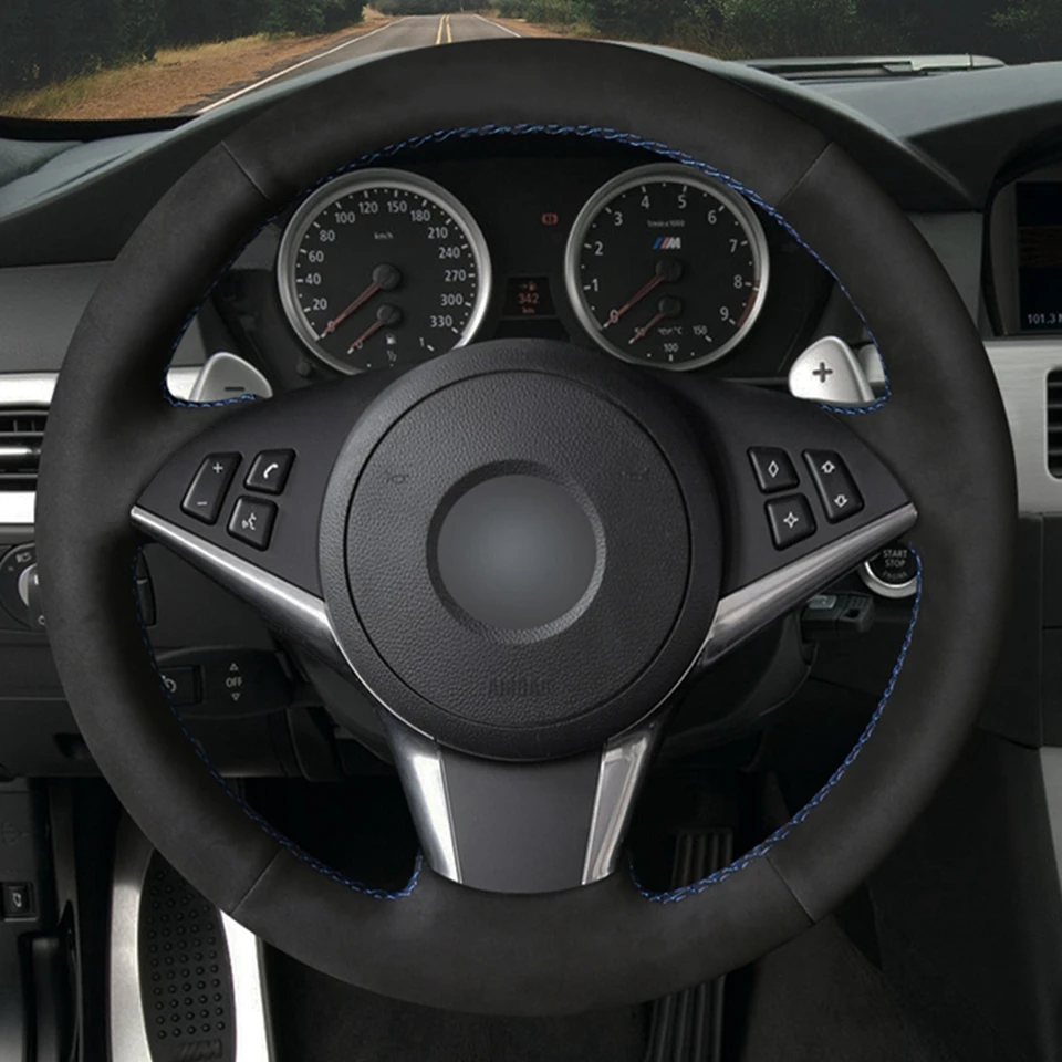 Черная замша ручной работы для BMW E60 E61 (универсал) 530d E63 E64 чехол рулевого колеса автомобиля 2004 2005 2006 2007 2008-2009, 2010