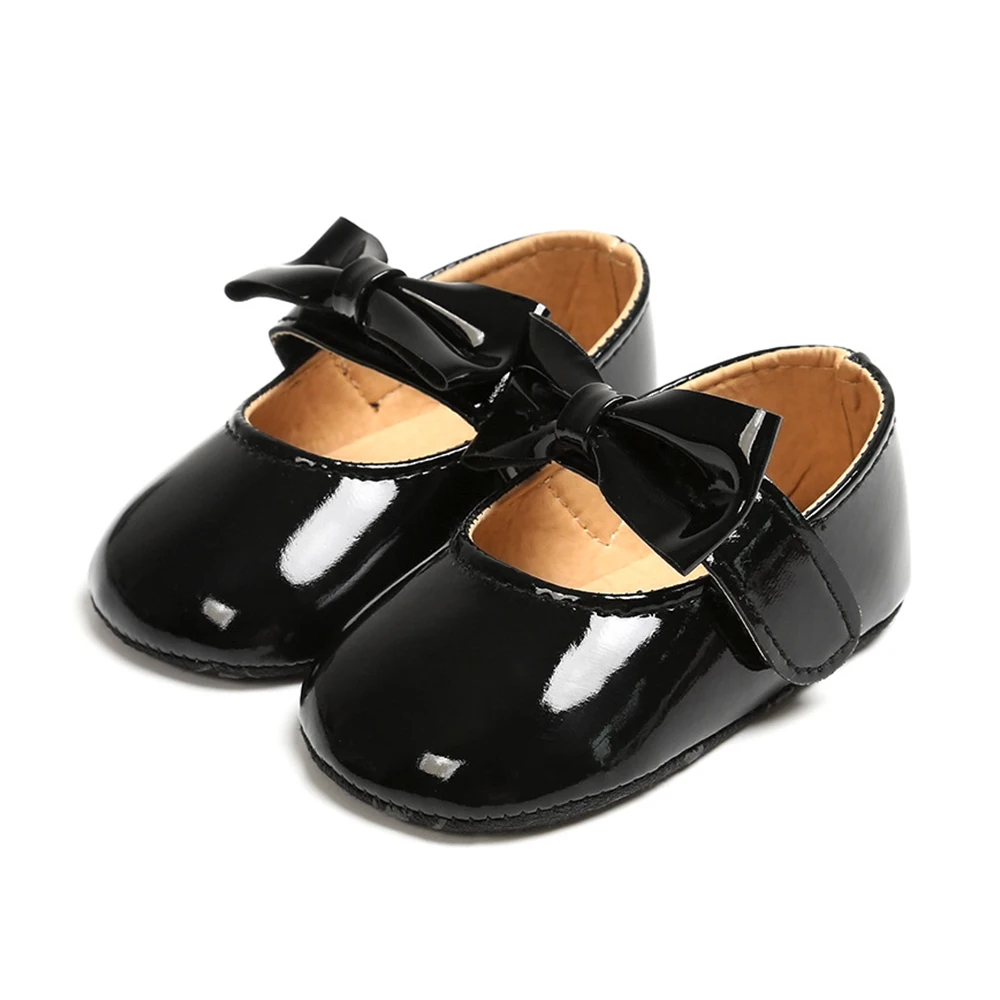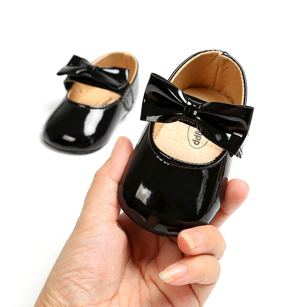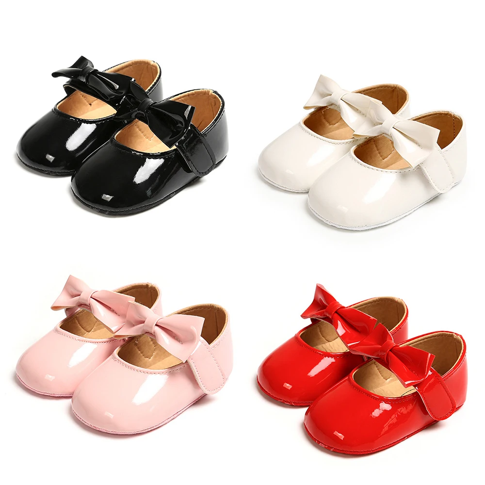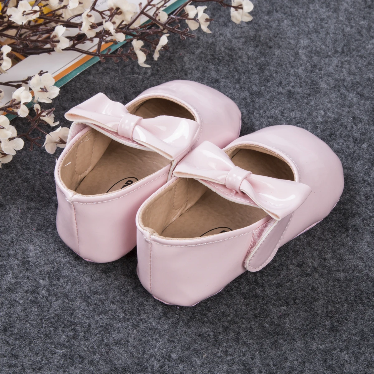 Нескользящие кроссовки для новорожденных девочек, обувь для детской коляски с бантом, однотонная кожаная мягкая подошва, мягкая подошва, ходовой товар
