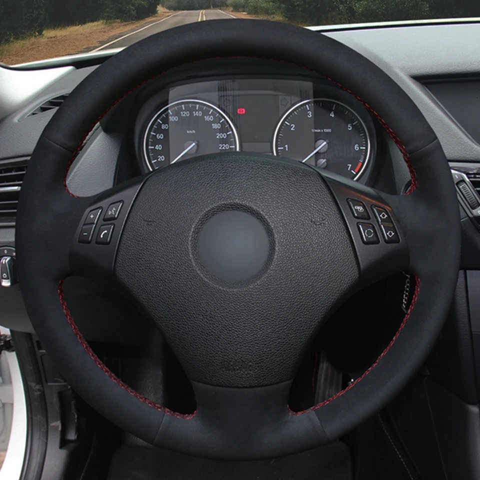 Чехол рулевого колеса автомобиля, прошитая вручную, черная натуральная кожа, замша, нескользящая, для BMW E90 E91(Touring) 320d 325i 335i X1 E84