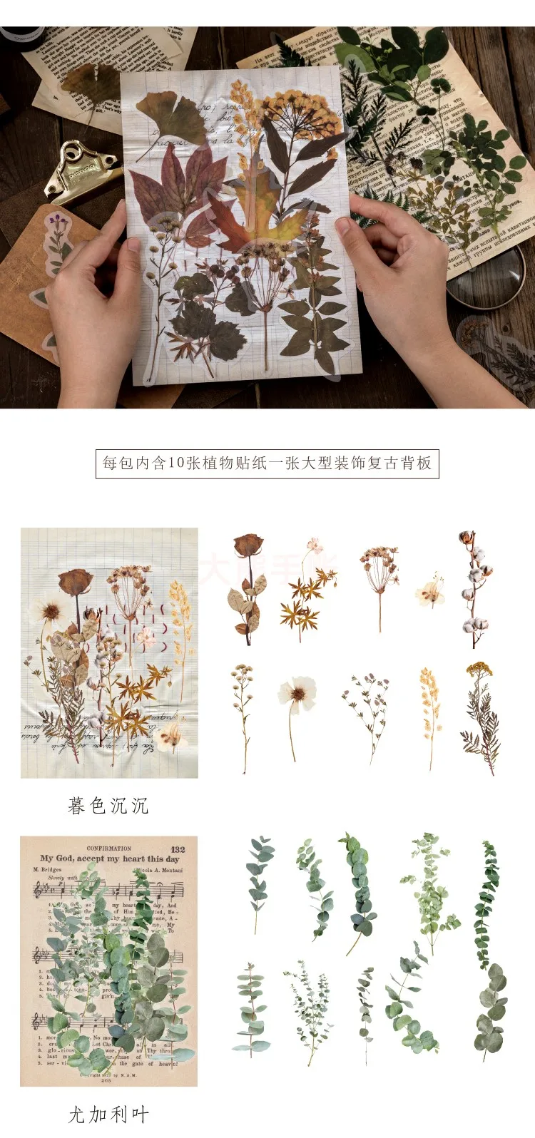 10 листов природы завод Hearb лист прозрачный стикер украшения Diy аблум дневник в стиле Скрапбукинг этикетка наклейка Kawaii Канцтовары