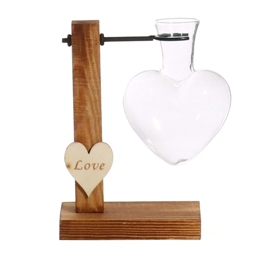 Гидропонное стекло плантатор Ваза сердце с деревянной подставкой, н...