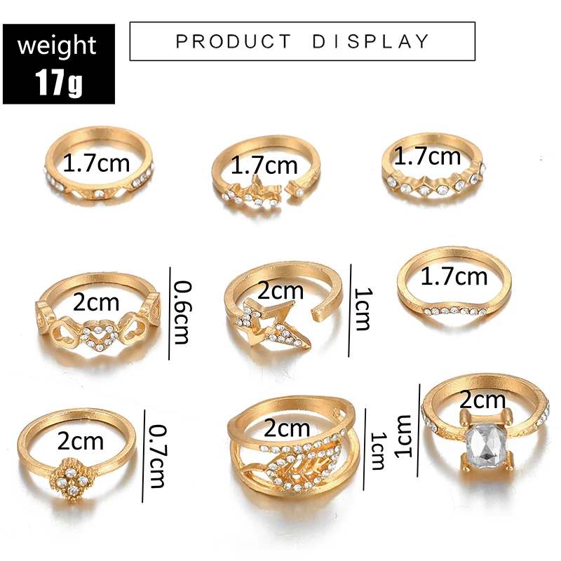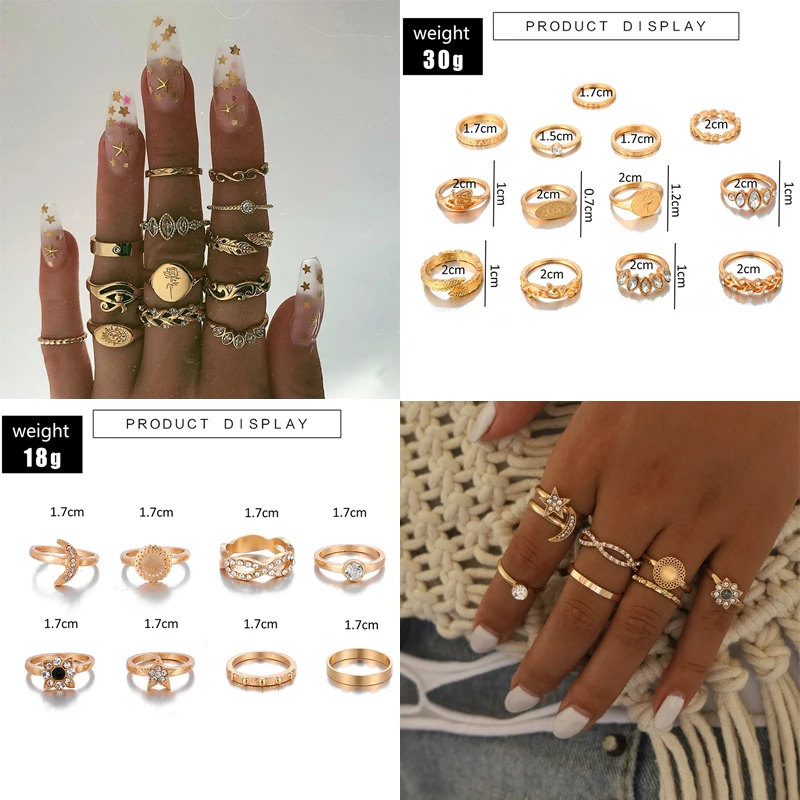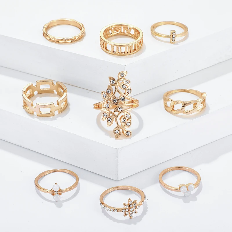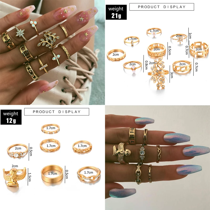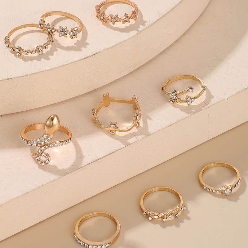 Комплект змея золотистого цвета колец Tocona, украшение для женские блестящие, со стразами, цветы, звезды, геометрический дизайн, богемный стиль, свадебные ювелирные изделия