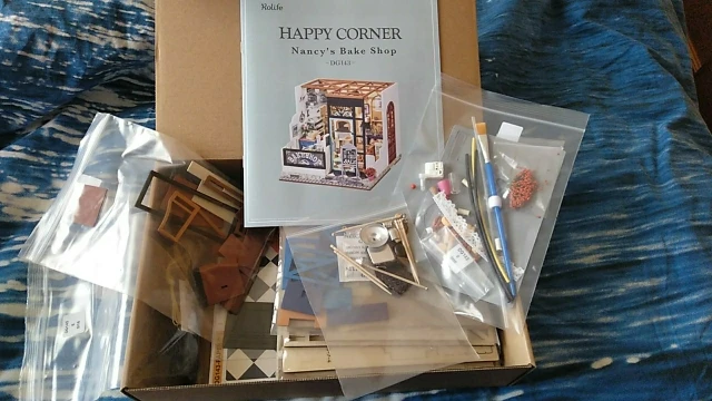 This box has no paint or clue. The clue I have myself but no paint is a bummer because I liked the colors of the furniture. No I have to find out myself. The product is from very flat plywood. It’s breaking easily and when you make a mistake, like I did, it’s almost not to change/repair.
