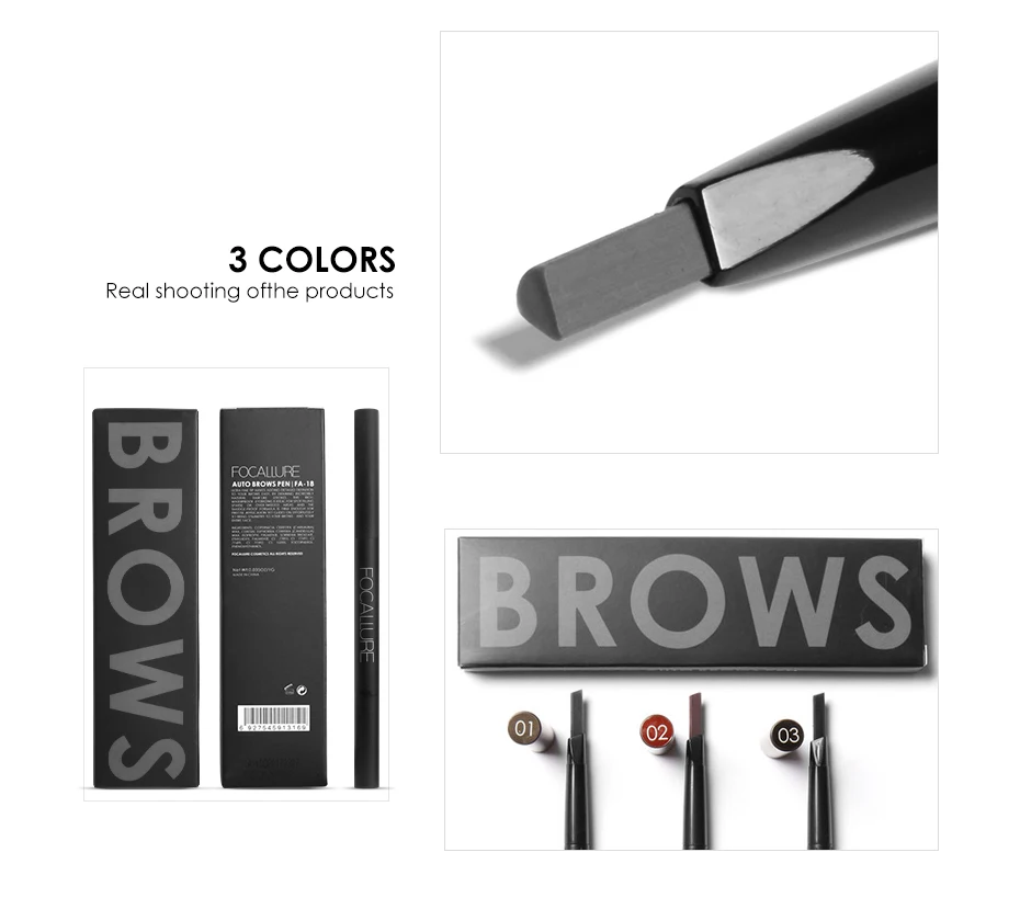 Focallure Водостойкий карандаш для бровей Черный Коричневый Серый 3 цвета ручка для бровей с кисточкой профессиональный усилитель бровей