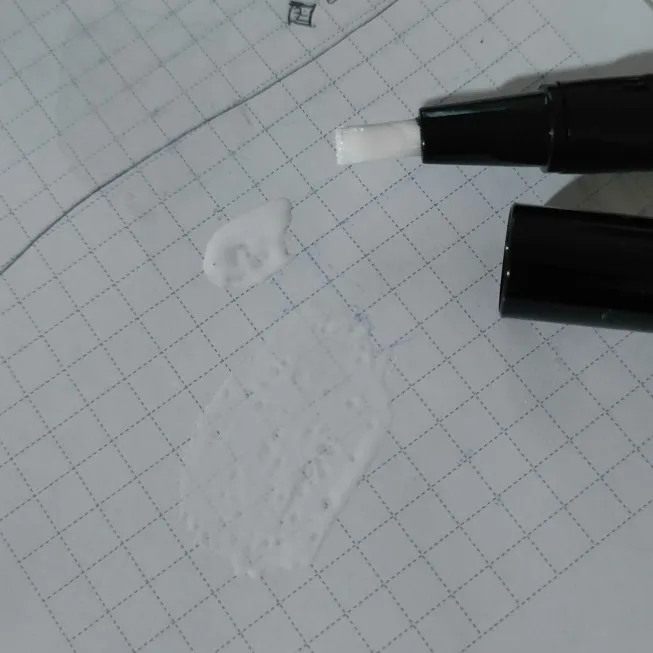 Я думала, что это нормальный лак для ногтей, но это полная фигня какая-то. Я планировала этой кисточкой-фломастером помечать насекомых и раскрашивать поделки. Но во-первых, воняет хуже обычного лака; во-вторых, застывает где-то сутки, и всё равно остаётся липковатым, в-третьих, на белой бумаге нормальный слой лака стал прозрачным (фото 3: слева - засохшее прозрачное пятно через пару дней и справа - примерный изначальный слой покраски)...
