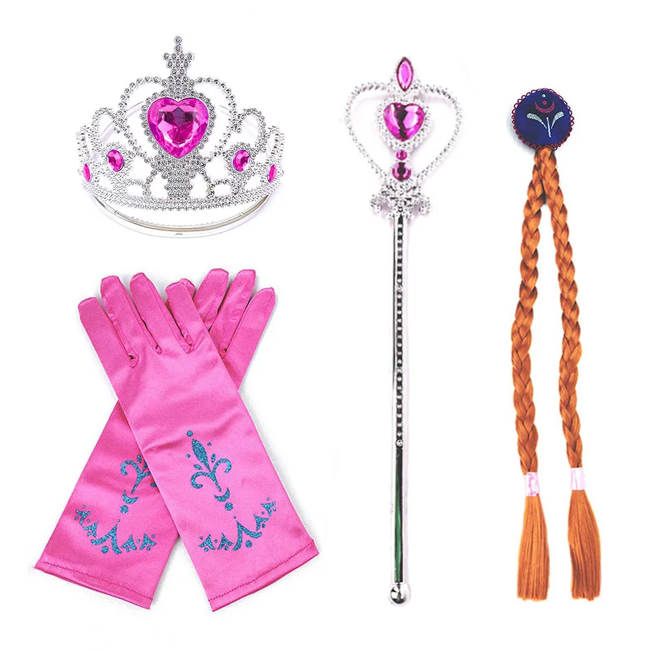 От 3 до 12 лет вечерние аксессуар принцессы перчатки парик кос для девочек платье Эльзы, Анны, Софии Аврора королева, Рапунцель, Золушка, наряд на первый день рождения опора