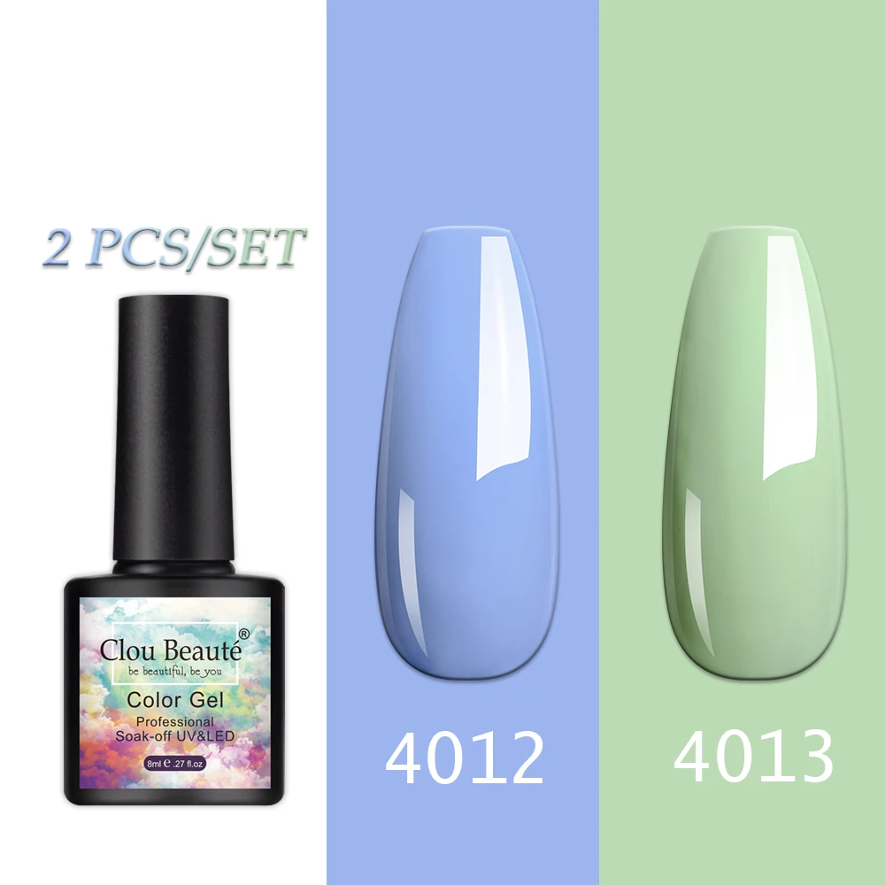 Clou Beaute 2 шт.компл., Цветной Гель-лак для ногтей, Полупостоянный лак для ногтей, Гибридный 8 мл, лак, смола, удаляется с ацетоном
