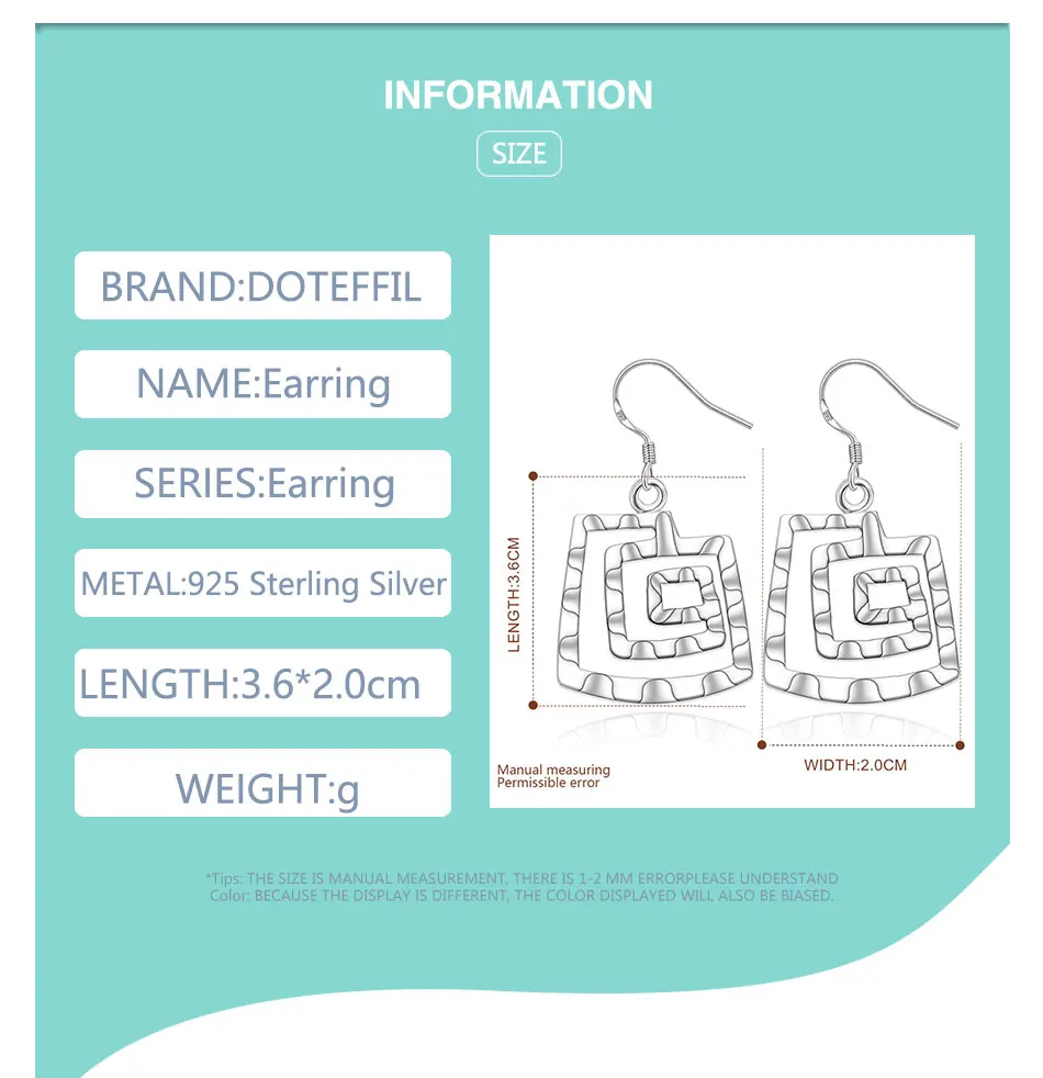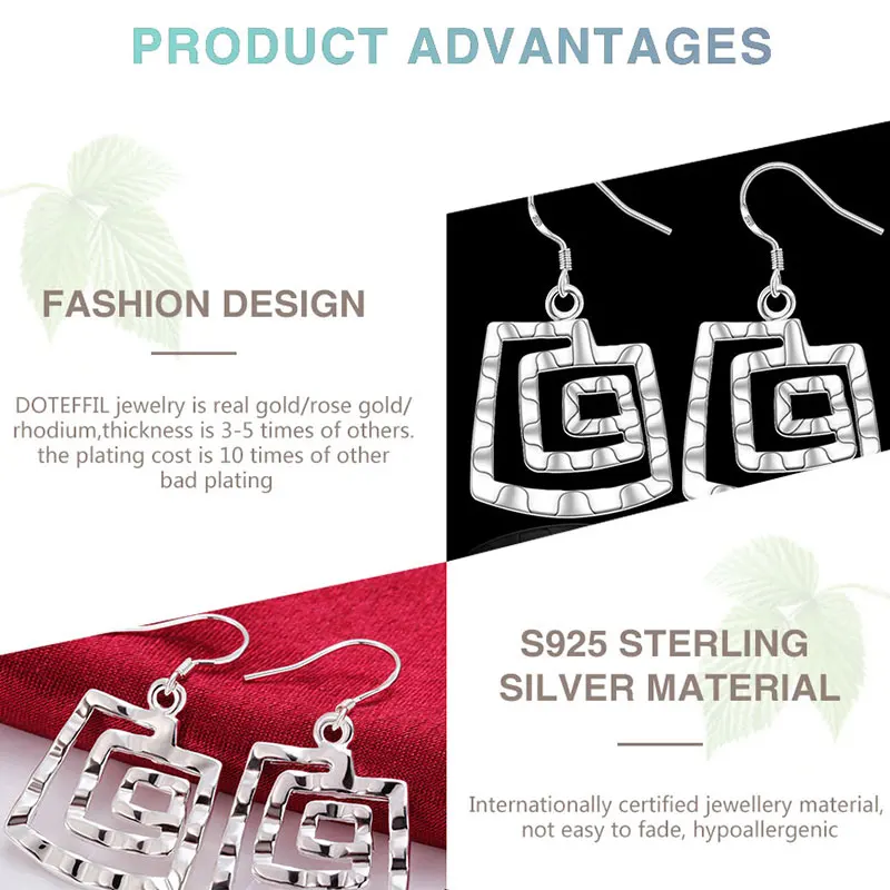 Женские серьги-подвески DOTEFFIL, из стерлингового серебра 925 пробы с квадратной нитью, бижутерия для помолвки и свадьбы