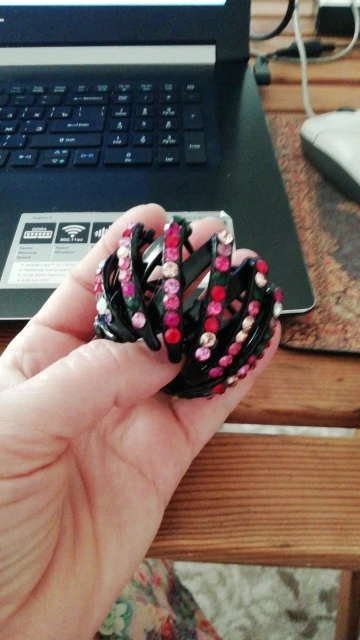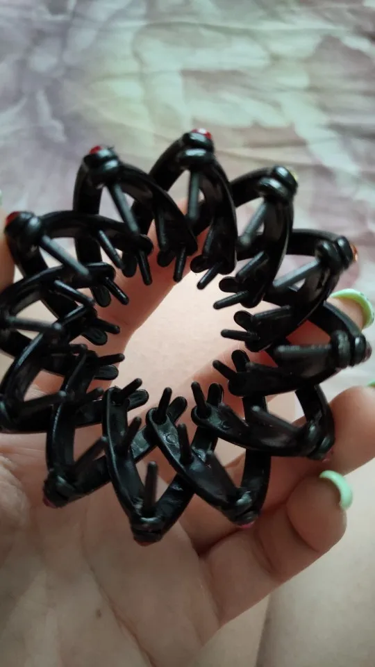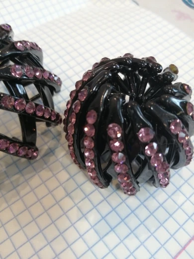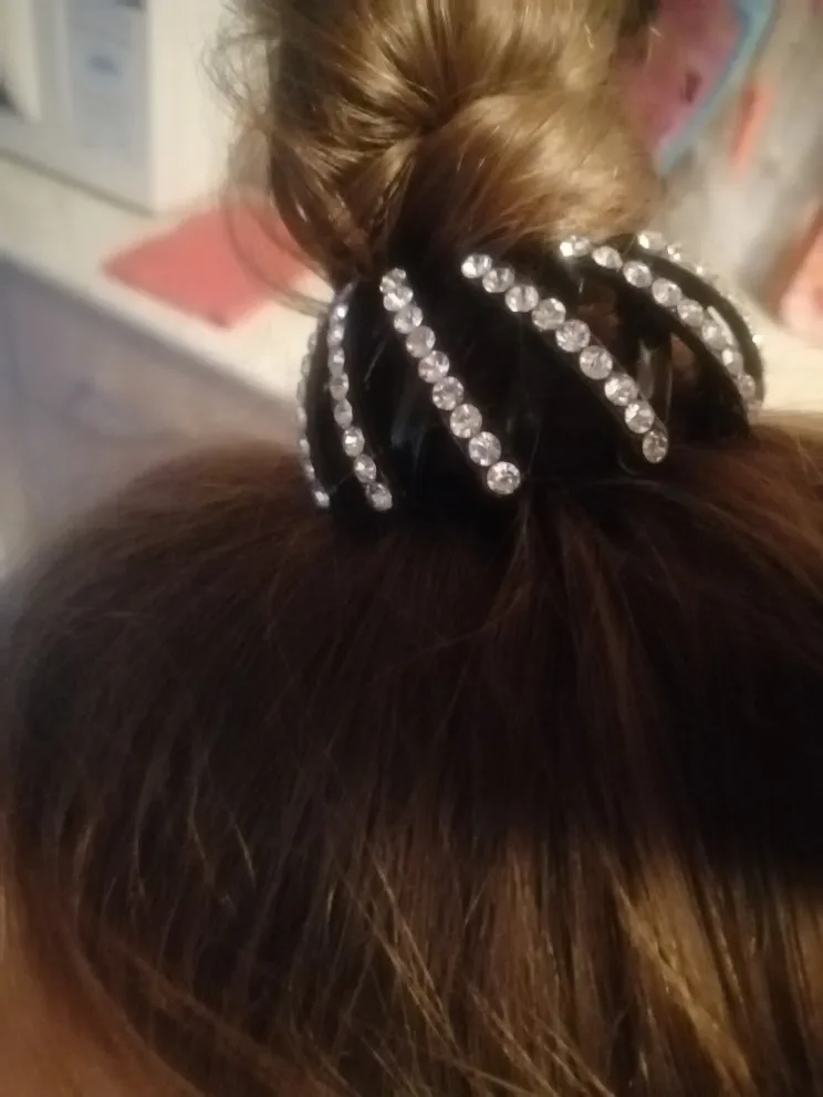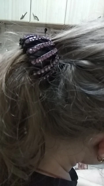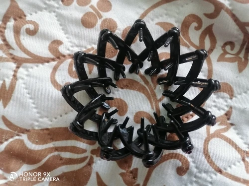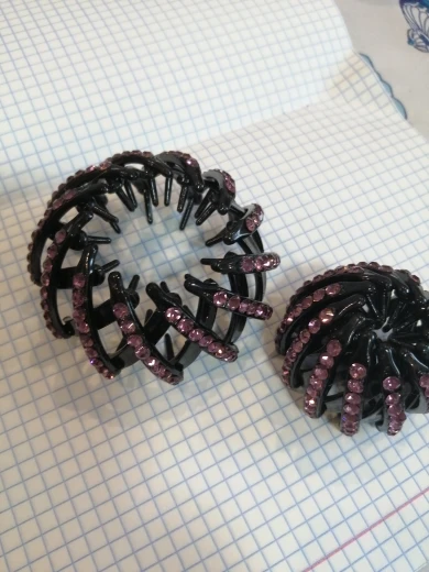 Заколки пришли быстро. Очень тугие, раскрывайте её аккуратно, не торопясь, чтобы не сломать. Волосы держит хорошо, хотя у меня волосы до поясницы и у дочки тоже длинные, но вот копну волос протягивать в шишку сложно, может это дело сноровки. Смотрится красиво. Спасибо