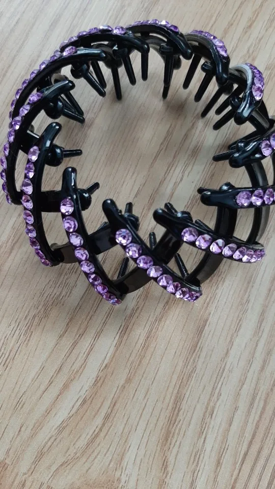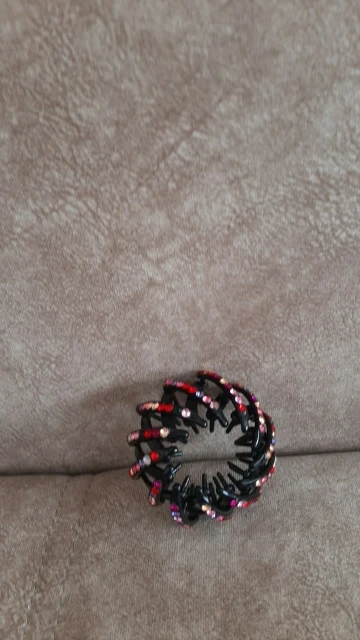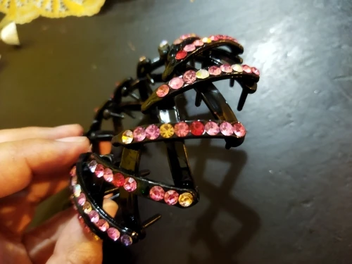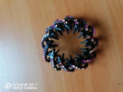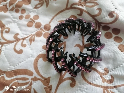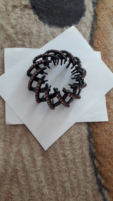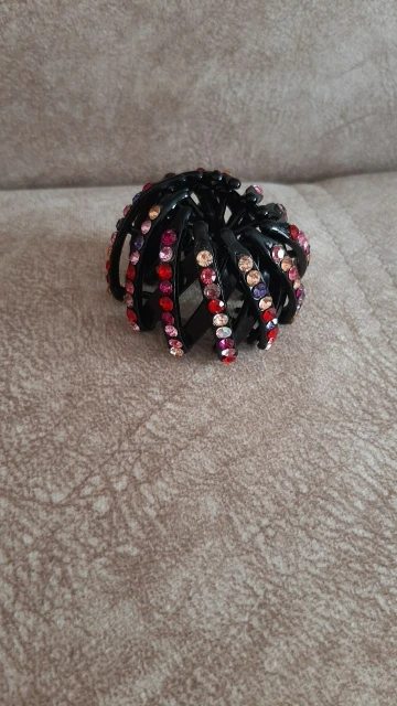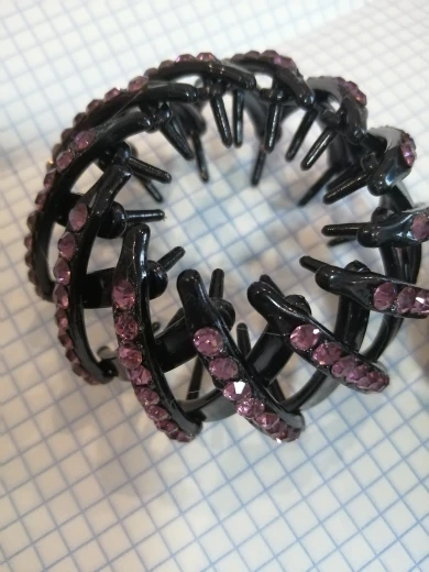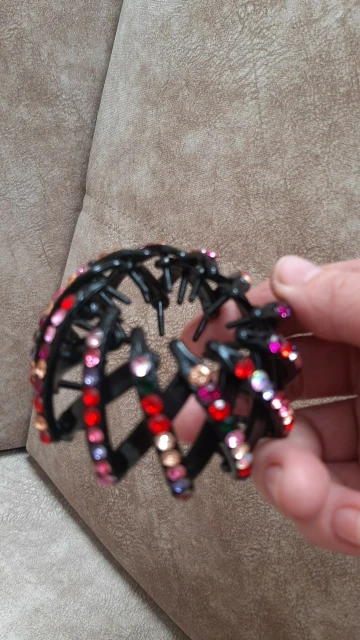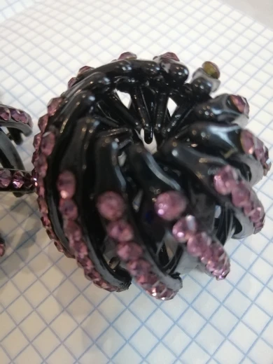 Хорошая заколка. Держится хорошо не спадает, не расходится. Зделана не плохо. Камушки приклеены не очень, после нескольких использовании у нас один отпал. Доставка 3 недели в отделение Новой почты. Посылка дошла без повреждений.