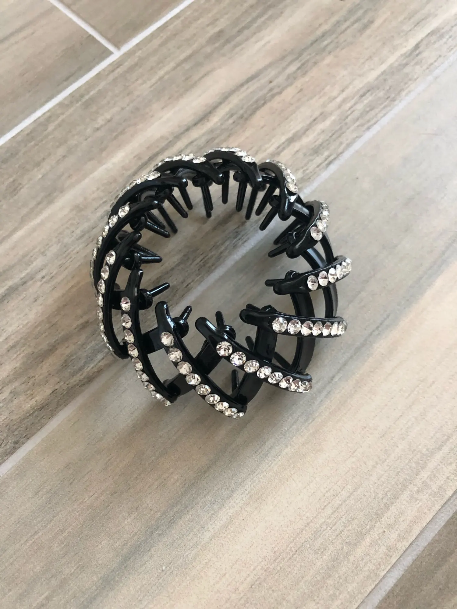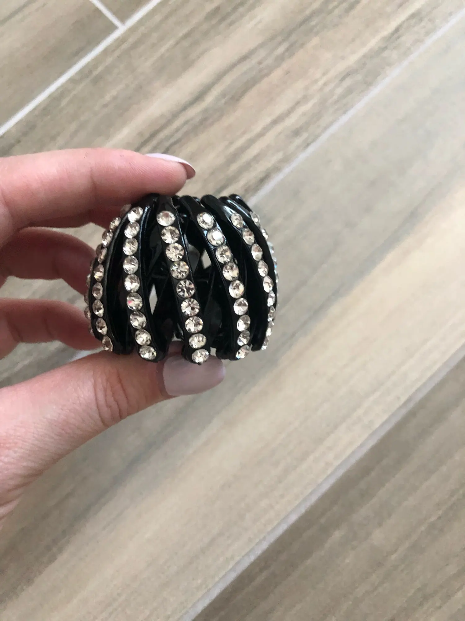 Tight hair clamp fits my bun exactly and stays in place well. It is beatiful, just a little hard to open and close. But I expect that will get better with time.
