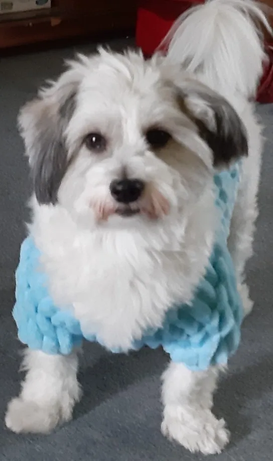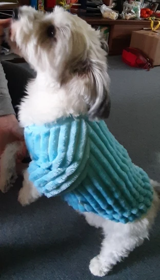 Доставка – 2,5 недели. Товар пришел целый, хорошо упакованный. Кофточка мягкая. На йорка 5 лет весом 4 кг спина 30см размер М сел хорошо, как раз "по фигуре". Я довольна. Рекомендую товар и продавца.