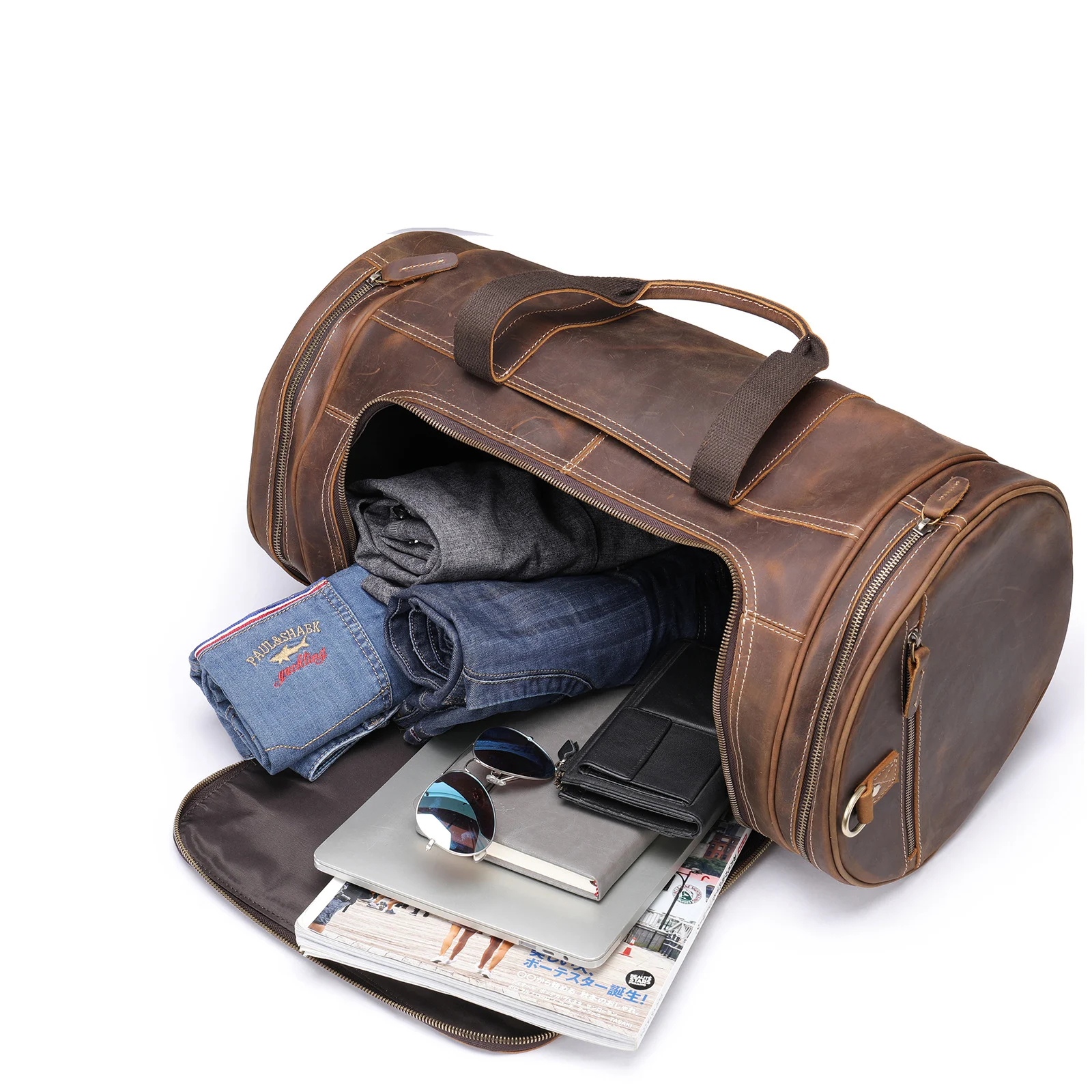 Материал: 100% натуральная кожа, Воловья кожа и кожа Crazy HorseДизайн: мужская кожаная дорожная сумка/ручная сумка/сумка для багажа/Сумка для выходных