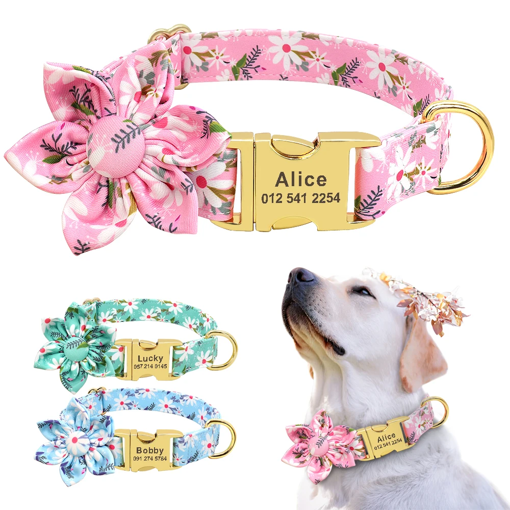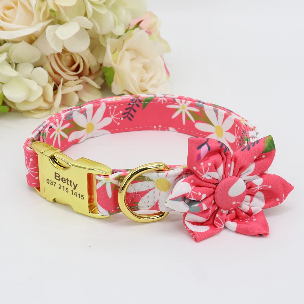 Ошейник для собак с цветочным рисунком на заказ, ошейник для собак из нейлона с цветочным принтом, ошейники для домашних животных, ошейники для маленьких средних и больших собак