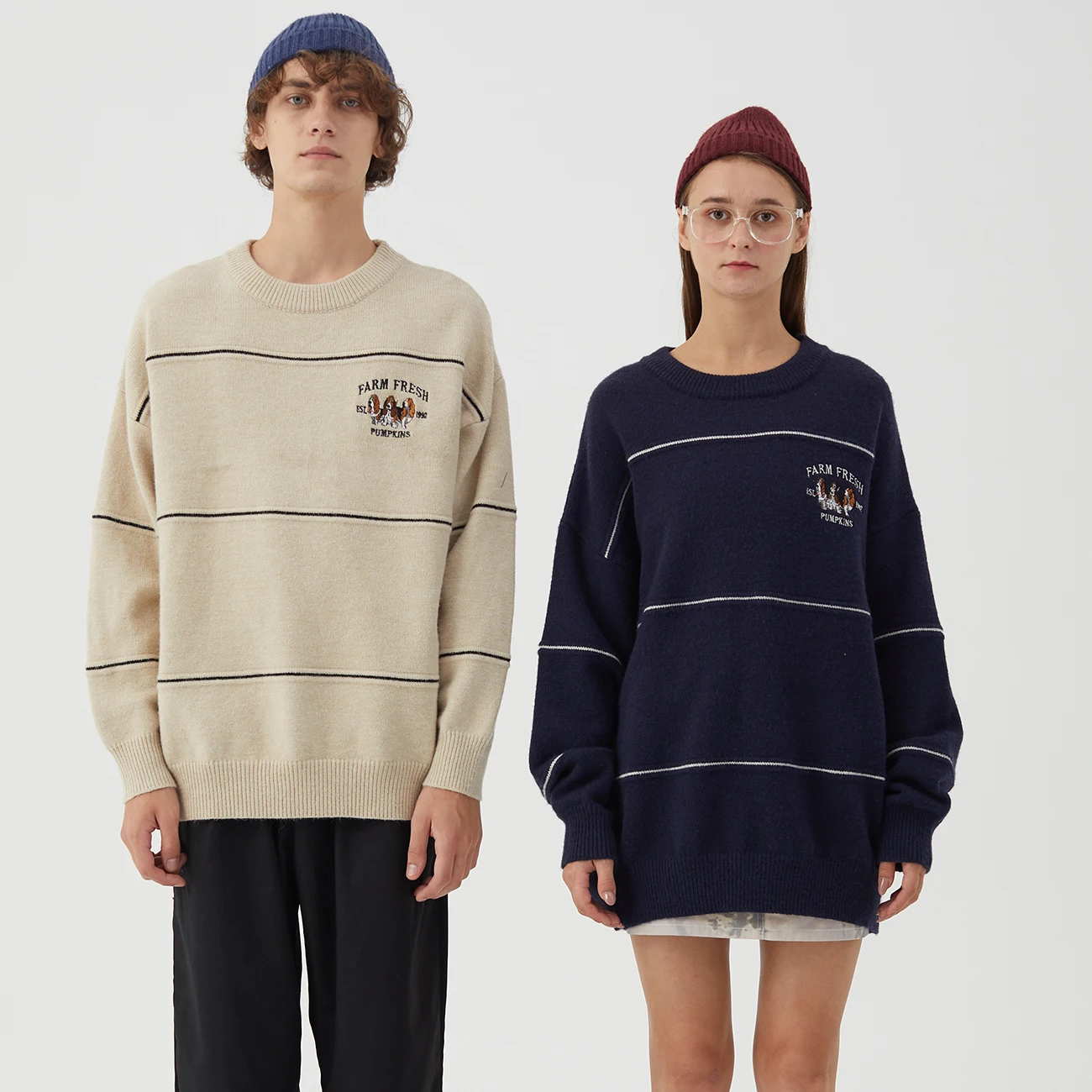 В Стиле Хип-Хоп Уличная мужской вязаный свитер Harajuku Emroidery собак Полосатое платье-свитер, свободный хлопковый пуловер свободного кроя для мужчин одежда 2020