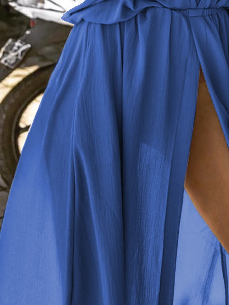 Женское платье-макси с глубоким V-образным вырезом и разрезом