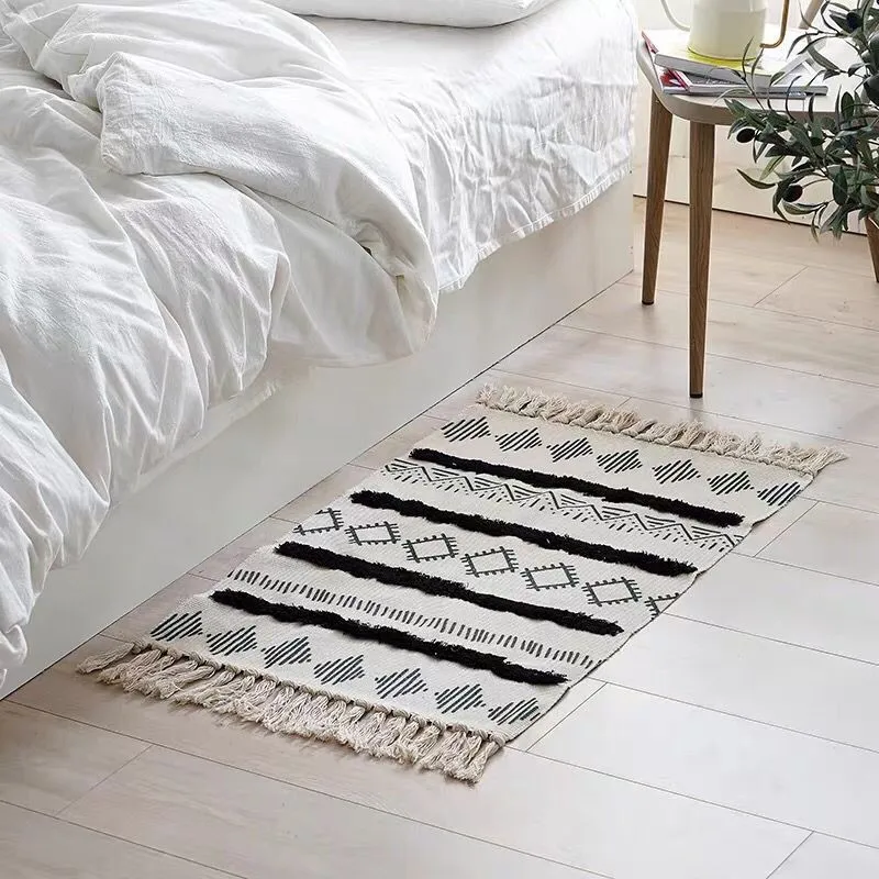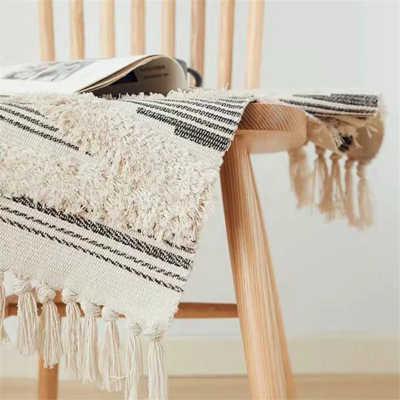Ретро Богемный Ковер Хлопок Льняная кисточка Коврики для дома Приветственная подставка для ног Спальня Кабинет Напольные коврики для гостиной Ковер Диван Коврик Молитвенный матрас