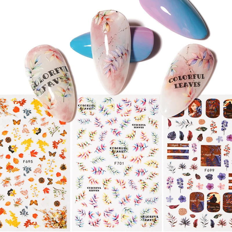 Переводные наклейки для ногтей, с листьями, стикеры 3D на ногти Nail Art, 1 шт.