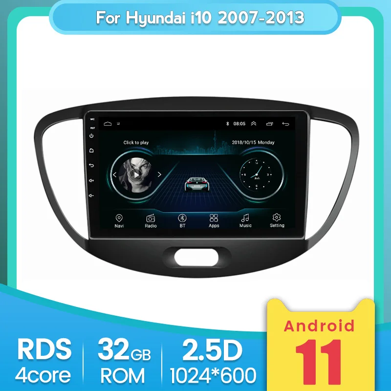 Мультимедийная магнитола для Hyundai Grand I10 2008-2012, 9 дюймов, IPS, 2 Din, Android, 2 ГБ + 32 ГБ
