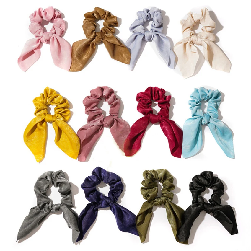 12 Цветов атласная резинка для Для женщин женские аксессуары для волос для девочек с заячьими ушками резинки для волос милые резинка для волос резинки для волос 2020
