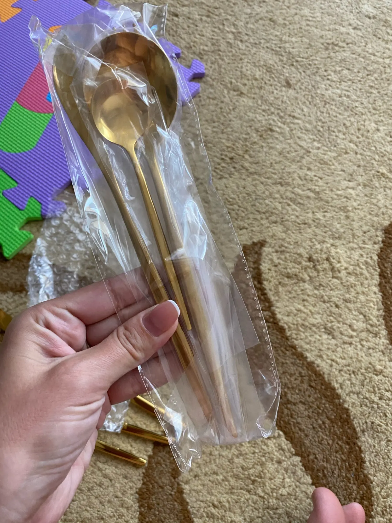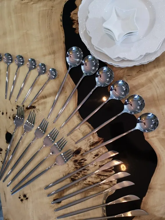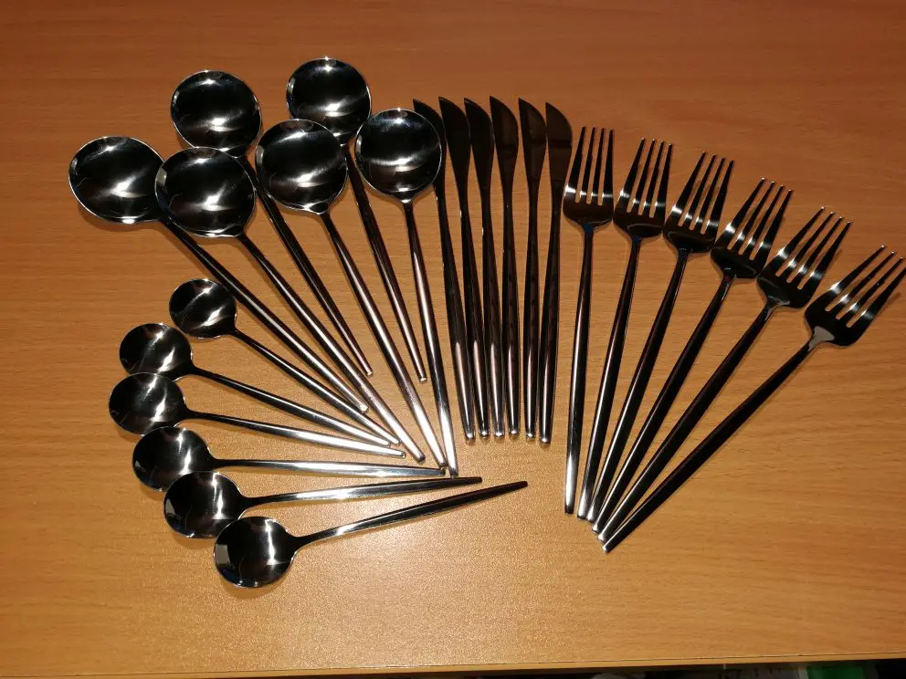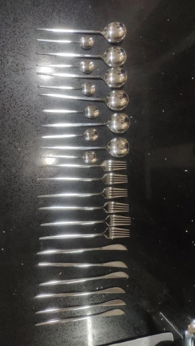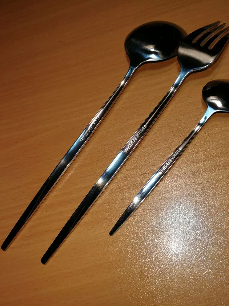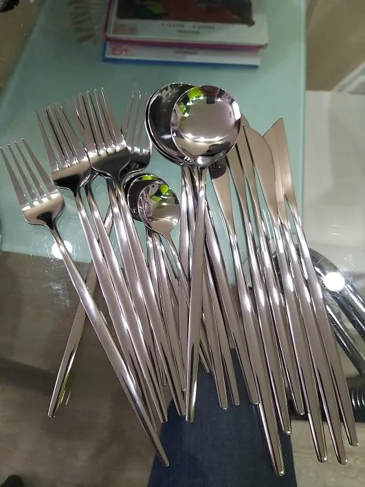 Заказ приехал через 3 недели до Якутска. Очень довольна, такие красивые и изящные как я и хотела. Сделаны из нержавеющей стали. Спасибо большое продавцу за хорошую упаковку, каждый столовый прибор был упакован отдельно в плотный пакет. При перевозке ничего не погнулось, все в отличном состоянии. Смотрю и любуюсь. Продавца рекомендую, отличный товар
