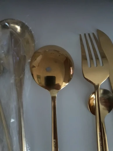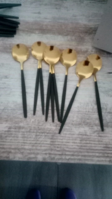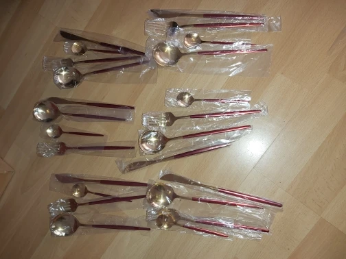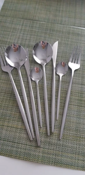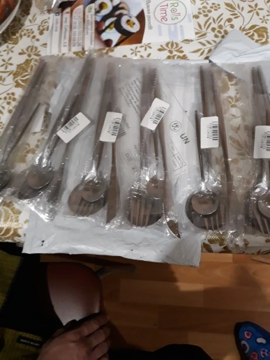 Набор пришёл быстро ,в принципе прилично за эти деньги . Ручки у ножей хорошие,круглые ,у остального как в отзывах на фото,немного неудобно, либо просто непривычно. На 1 ложке брак с задней стороны ,как царапина, то видно что брак заливки. Спор не стала открывать,брала для личного пользования