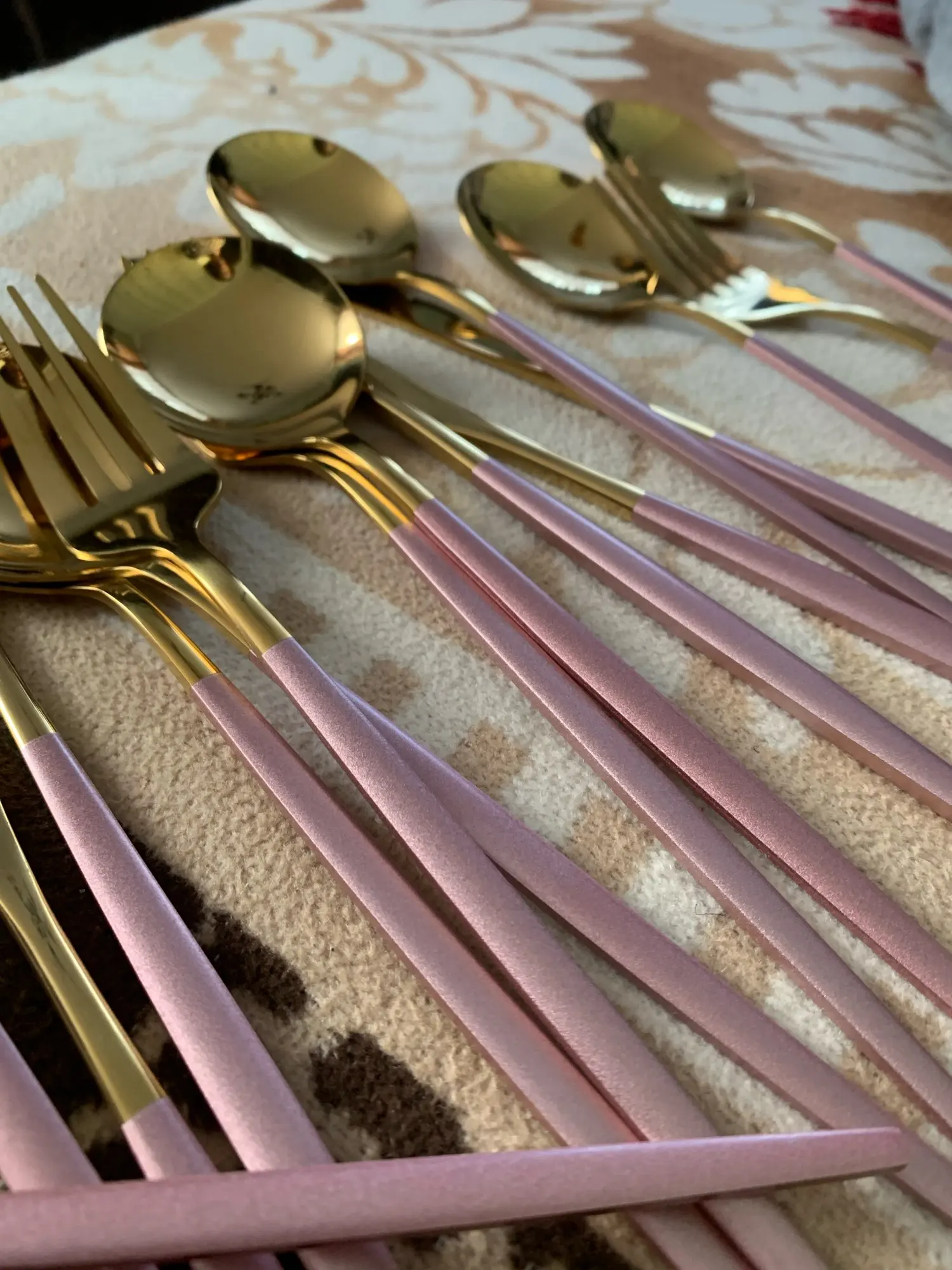 Доставка быстрая, пришло за 4 дня, я довольна) приборы конечно не для каждодневного пользования, для сервировки. Придётся мыть руками . Надеюсь не облезут. Форма и цвет мне очень понравились, спасибо.