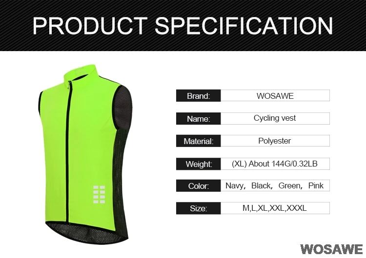 Светоотражающий Жилет WOSAWE, для велоспорта, ветрозащитный, непром...
