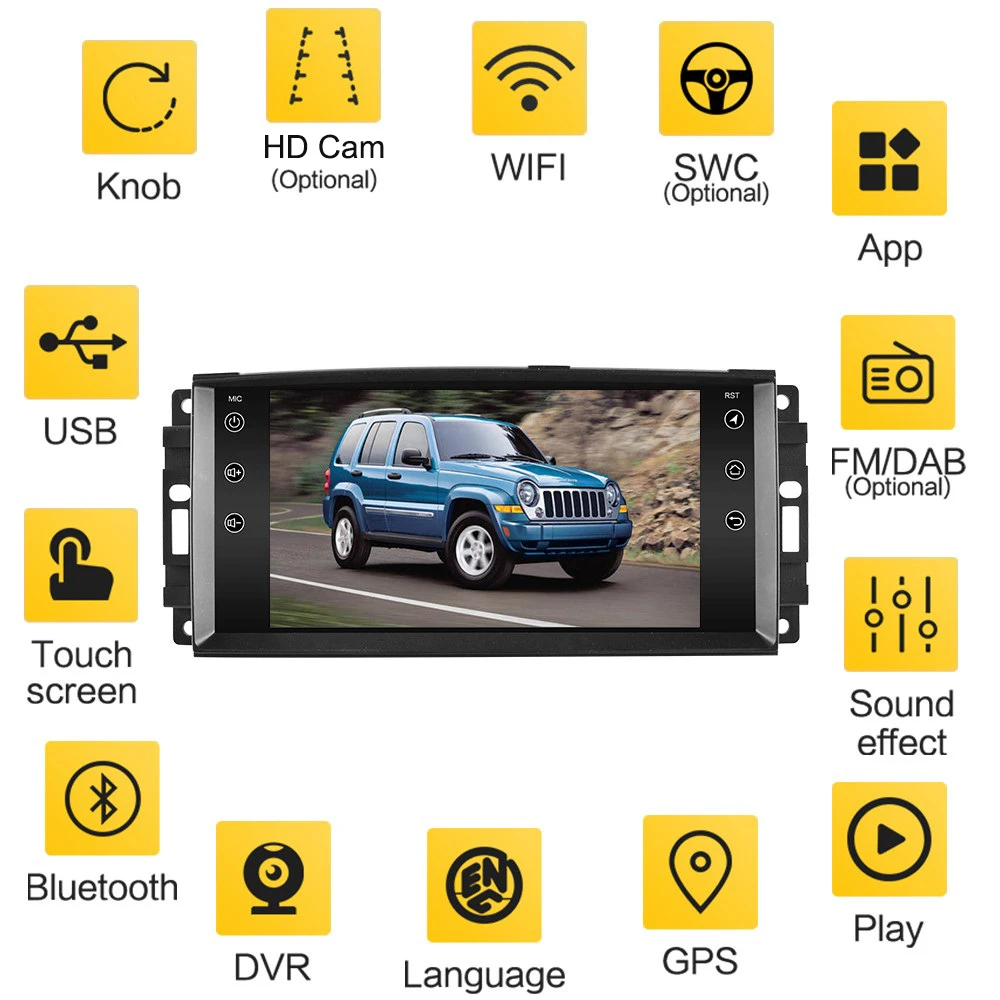 2 din Android 8,1 7 ''автомобильное радио для Jeep Cherokee 2009 2008 2010 Wrangler стерео для Dodge Chrysler GPS Авторадио все в одном