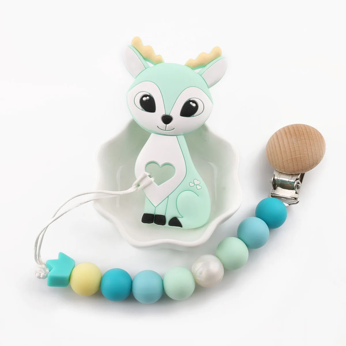 10 шт./5 шт. силиконовый Прорезыватель Sika Deer с мультипликационным животным DIY соски с зажимом цепи BPA Бесплатно Пищевой Силикон лося детский Прорезыватель