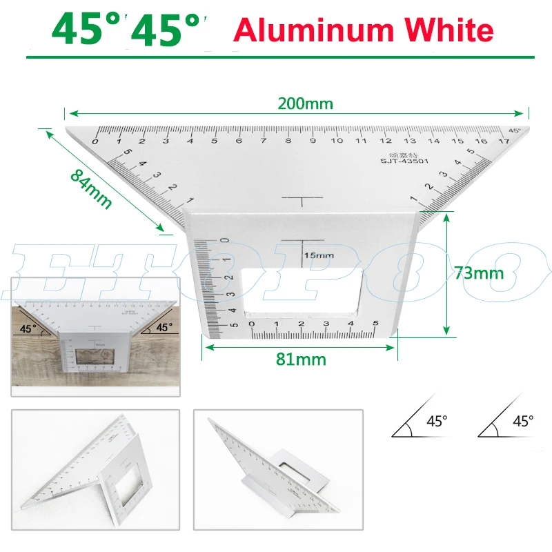 Японский Алюминий легированная квадратная угловой измерительный прибор 45 градусов 90 градусов измеритель угломер для Многофункциональный плотник деревообрабатывающий инструмент