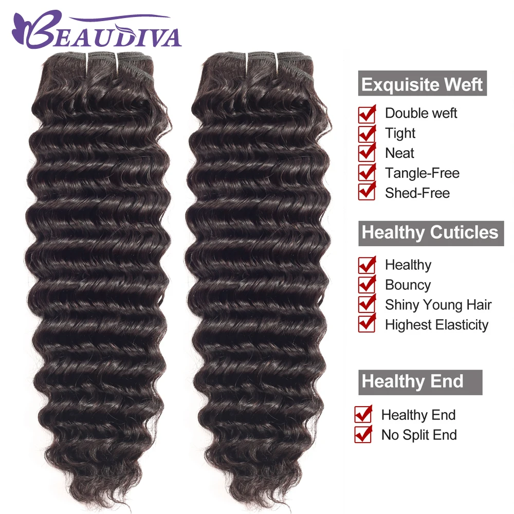 BEAUDIVA бразильские волнистые волосы 3 4 пряди с 13X4 фронтальной бразильской глубокой кудрявой двойной уток и закрытие