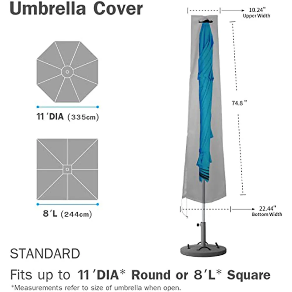 Чехлы для зонтов, для патио, водонепроницаемые, с застежкой-молнией, для улицы от 7 до 11 футов, большой чехол от дождя