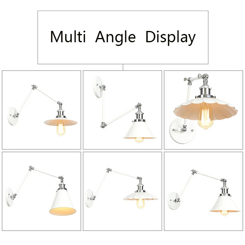 Белая Регулируемая настенная лампа в стиле индастриал, комнатный светильник для дома, спальни, лофт, винтажные светодиодные Настенные светильники из железа в стиле ретро с лампочками E27