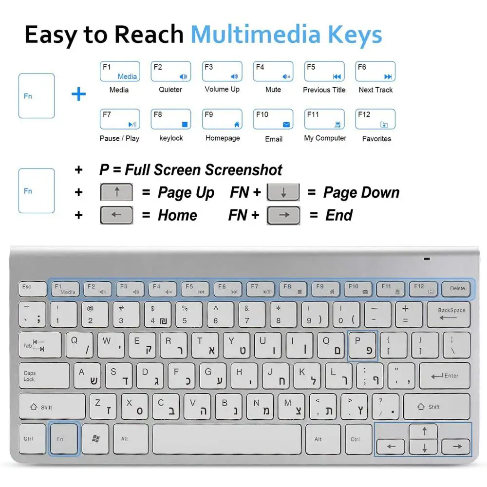 Беспроводная клавиатура lsrael, ультратонкая, 2,4 ГГц, иврит, компактный размер, низкий уровень шума, для ноутбуков, настольных ПК, Windows, Android box