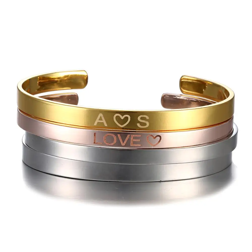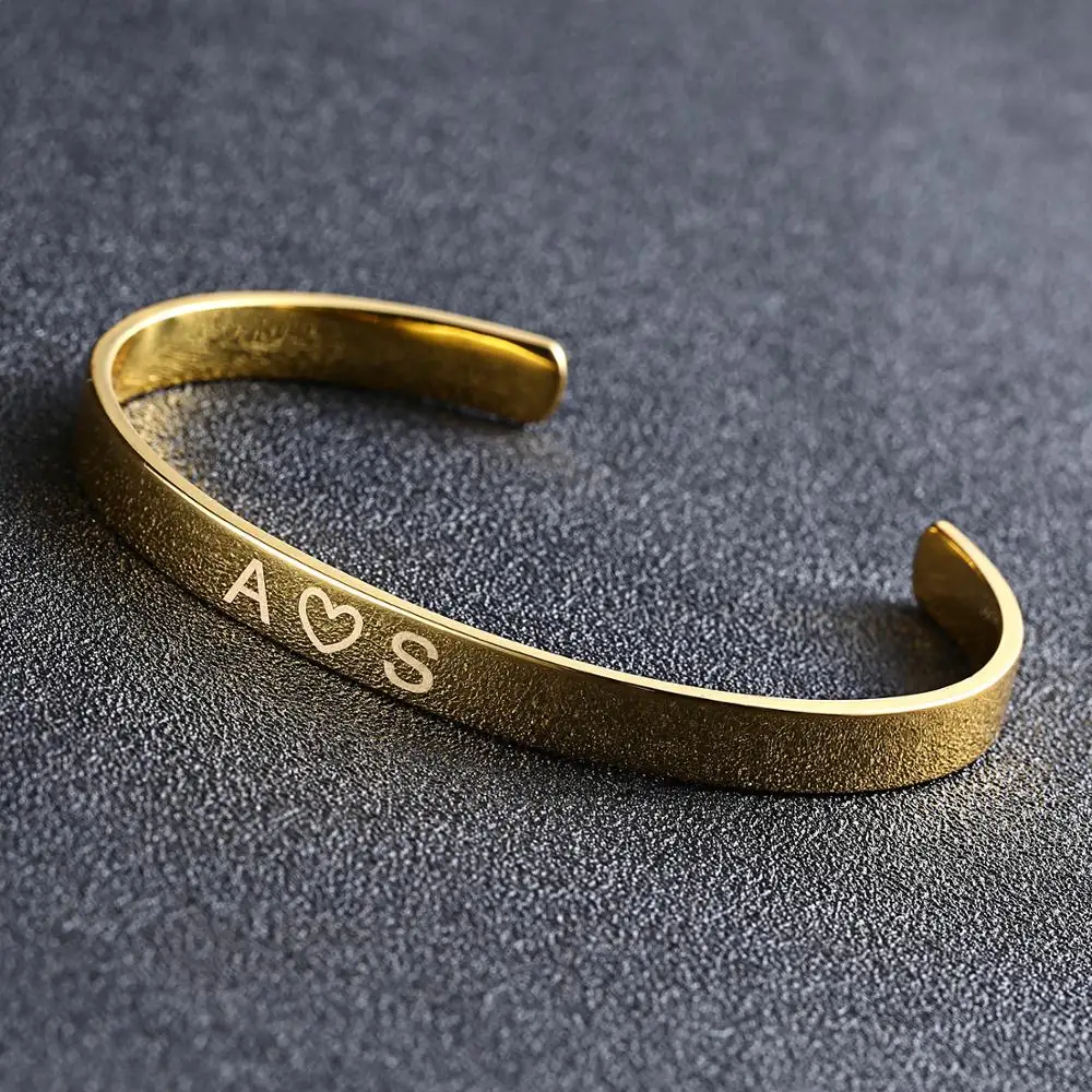 Персонализированный браслет из нержавеющей стали на заказ, Бесплатная гравировка, Модный Браслет-манжета золотого и серебряного цвета для женщин, подарок для влюбленных