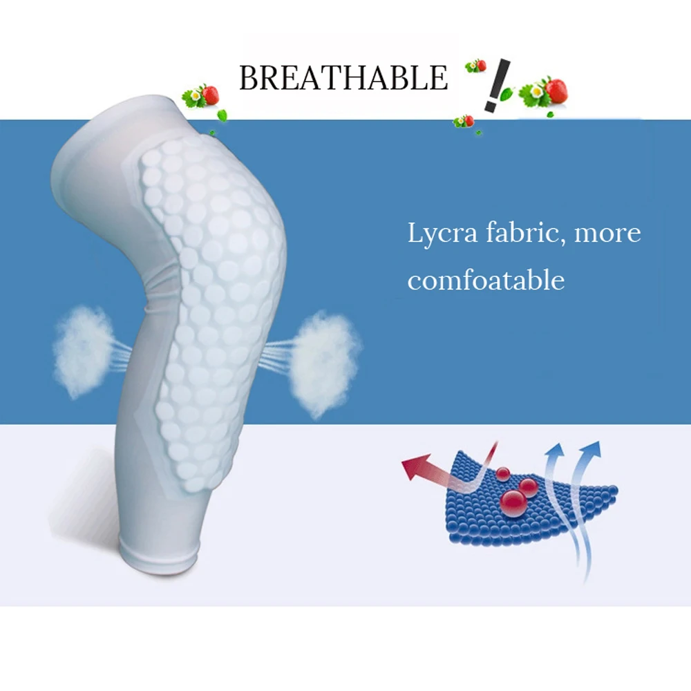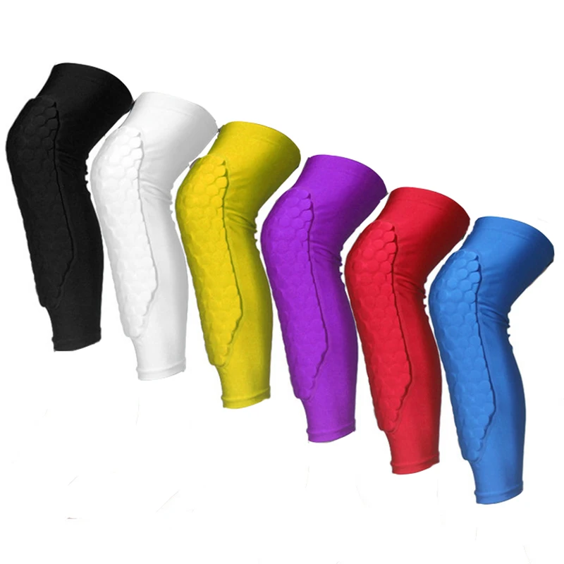 Новые длинные баскетбольные наколенники с сотовой структурой, губчатый наколенник для защиты от столкновений, фиксатор для голени, фиксатор для бега, гетры с пользовательским логотипом