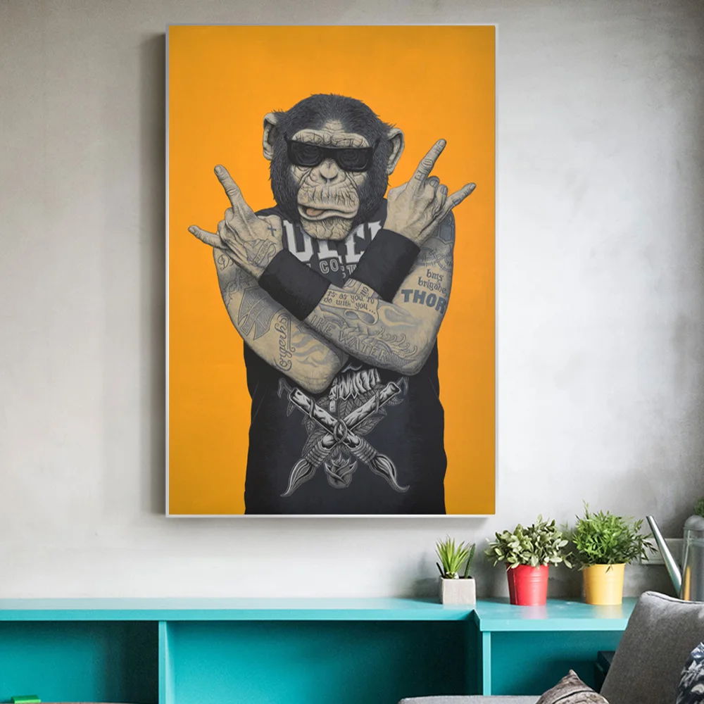 Уличная поп-арт граффити обезьяна холст живопись настенное искусств...