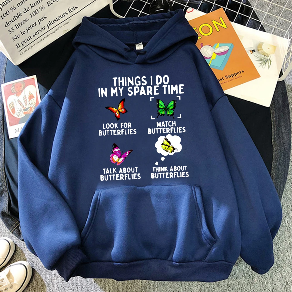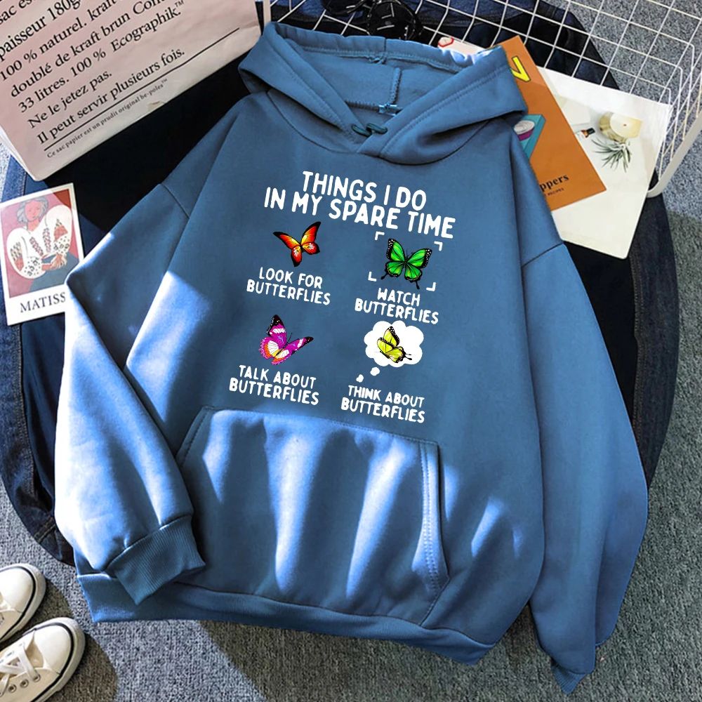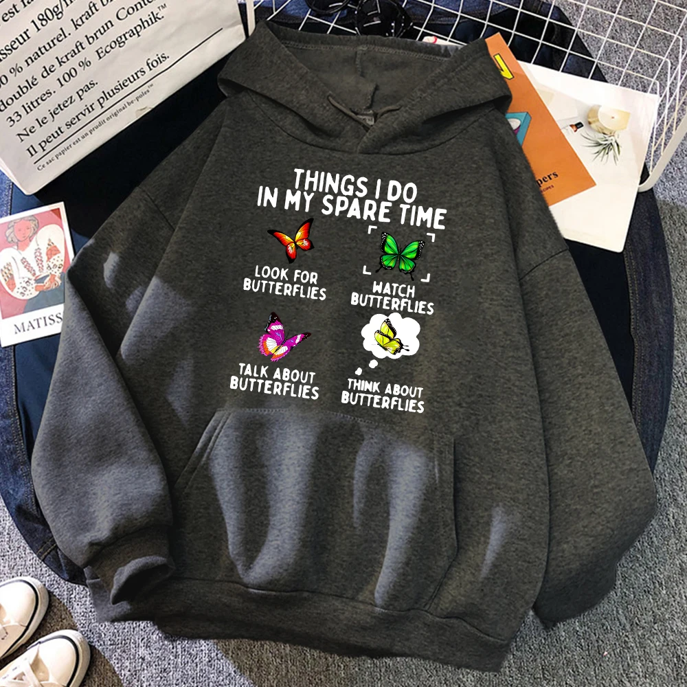 Толстовка мужская с мультяшным принтом бабочки, уличный свитшот в стиле Харадзюку, Модный пуловер в ретро стиле, Корейская одежда оверсайз, с капюшоном