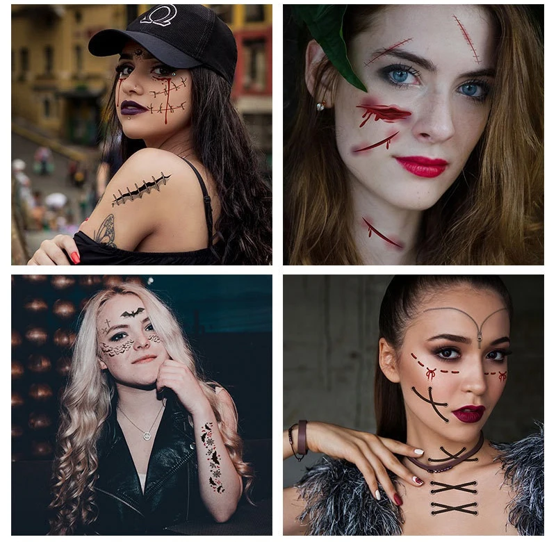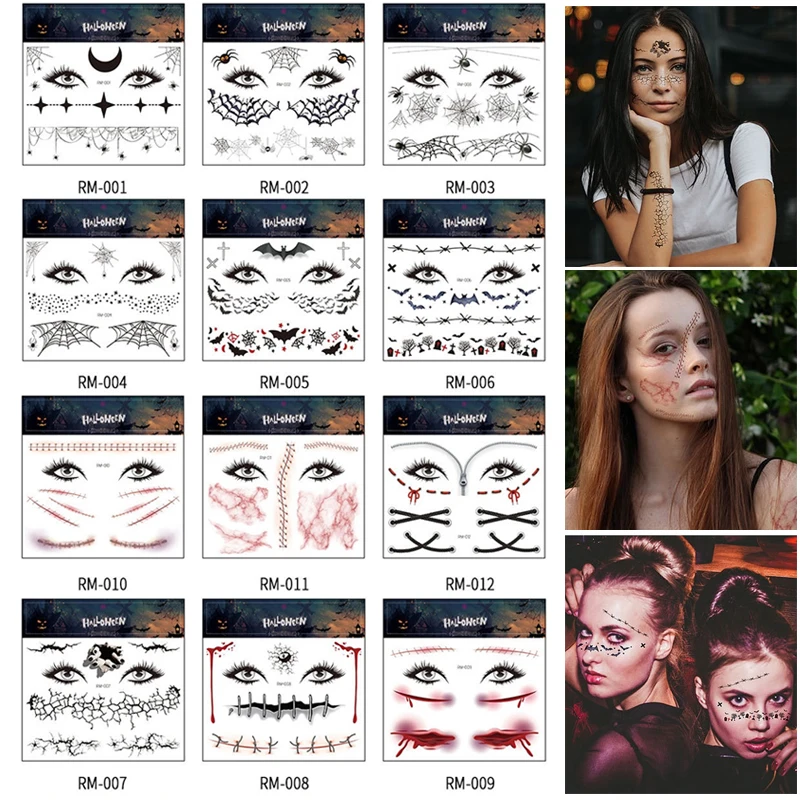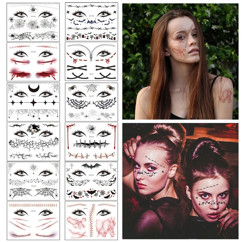 1 шт., наклейка на лицо, страшная наклейка Татуировка шрамы s, временная тату-наклейка s, Хэллоуин, фестиваль, водостойкая, Хэллоуин, искусственные татуировки