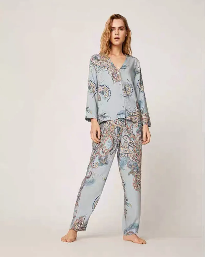 Пижама женская, из хлопка и вискозы, с длинными рукавами
