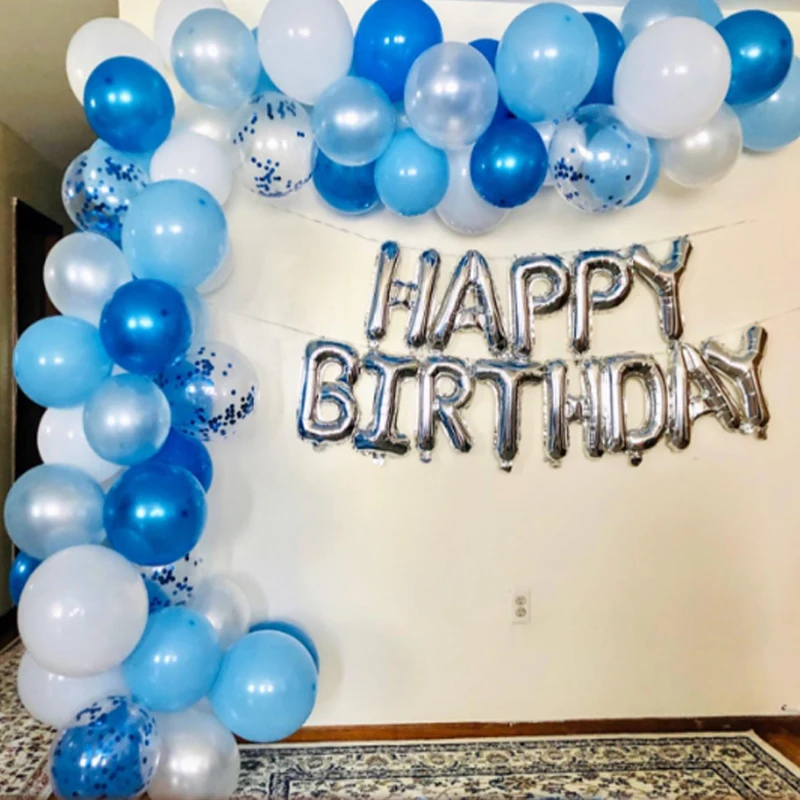 Агатовые мраморные шары 40 шт., синие шарики с конфетти для украшения вечеринка для мальчика день рождение 1 год, украшение для дня рождения ребенка