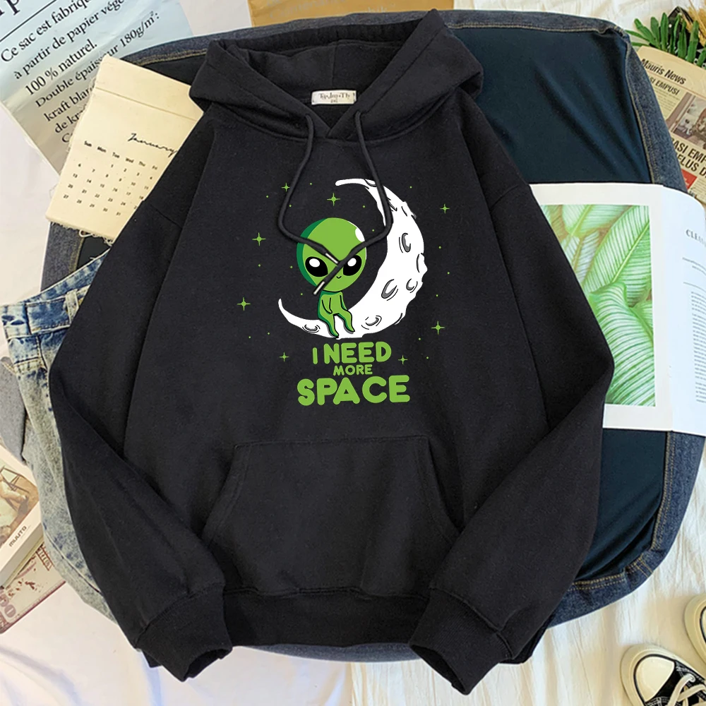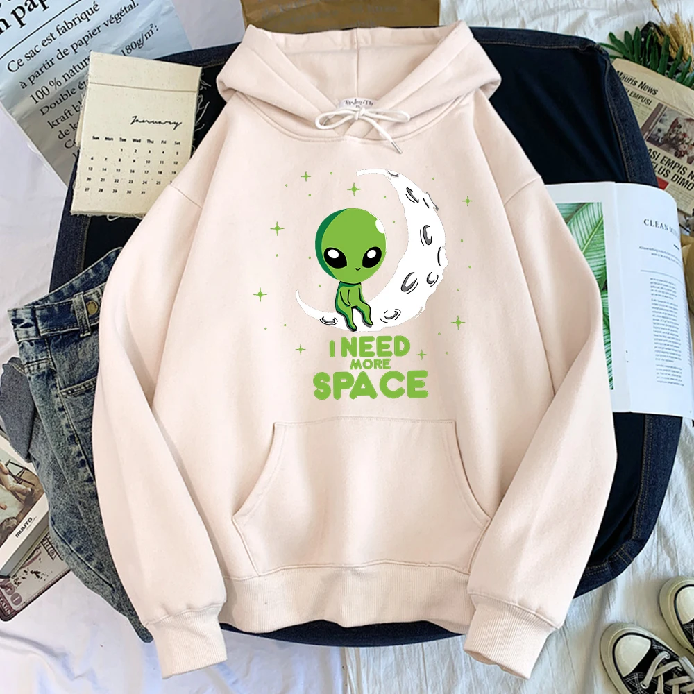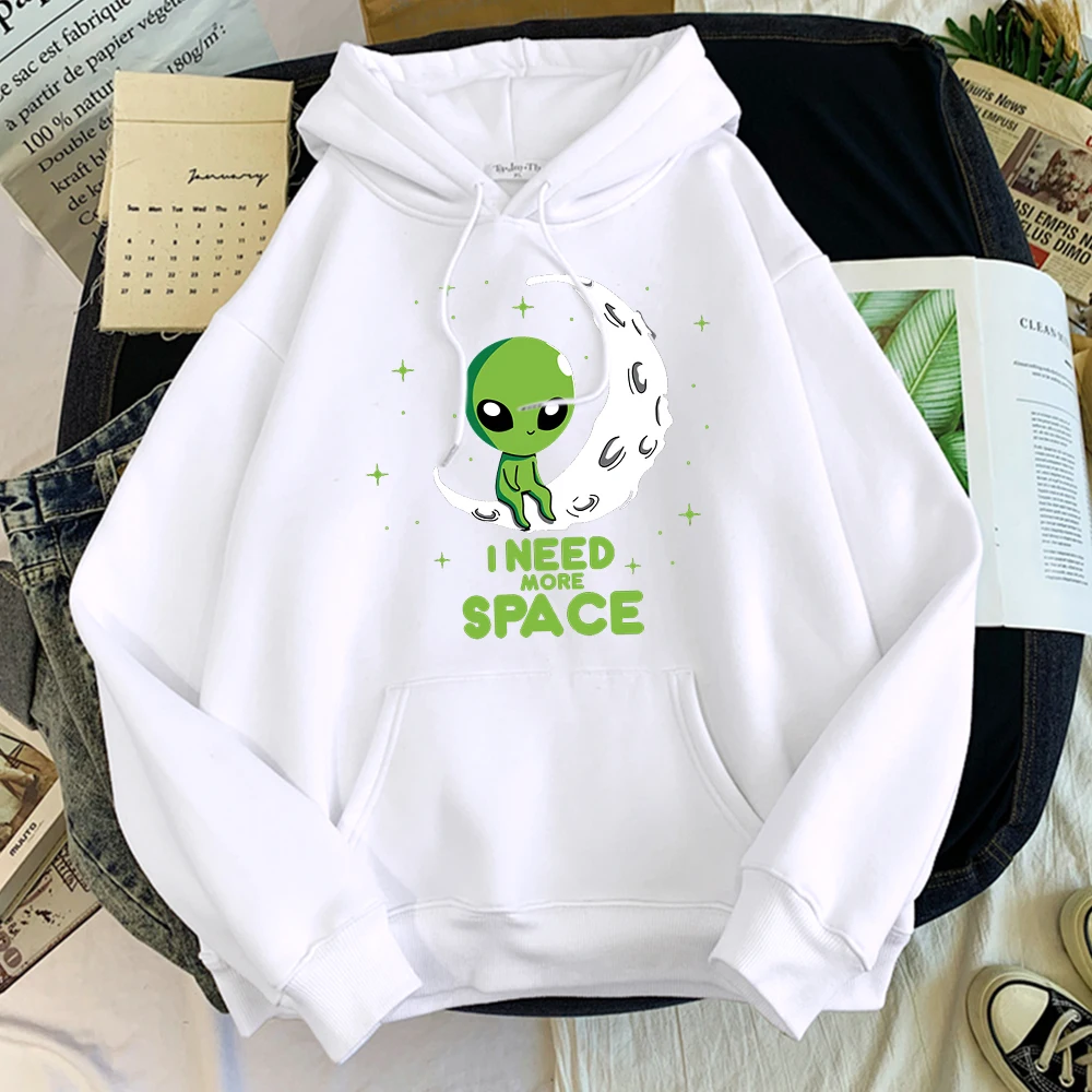 Толстовка мужская с мультяшным зеленым инопланетянином, мне нужно больше пространства, спортивный костюм для мужчин, Повседневная модная толстовка, Харадзюку, большие мужские пуловеры
